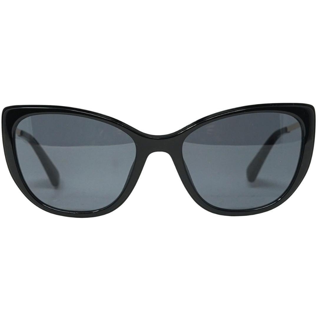 Ces lunettes de soleil œil de chat présentent un design élégant avec des verres foncés et une monture noire brillante. Les branches sont d'une couleur or frappante, ajoutant une touche d'élégance à l'ensemble. Le design est à la fois tendance et fonctionnel, offrant une protection solaire tout en rehaussant n'importe quelle tenue.