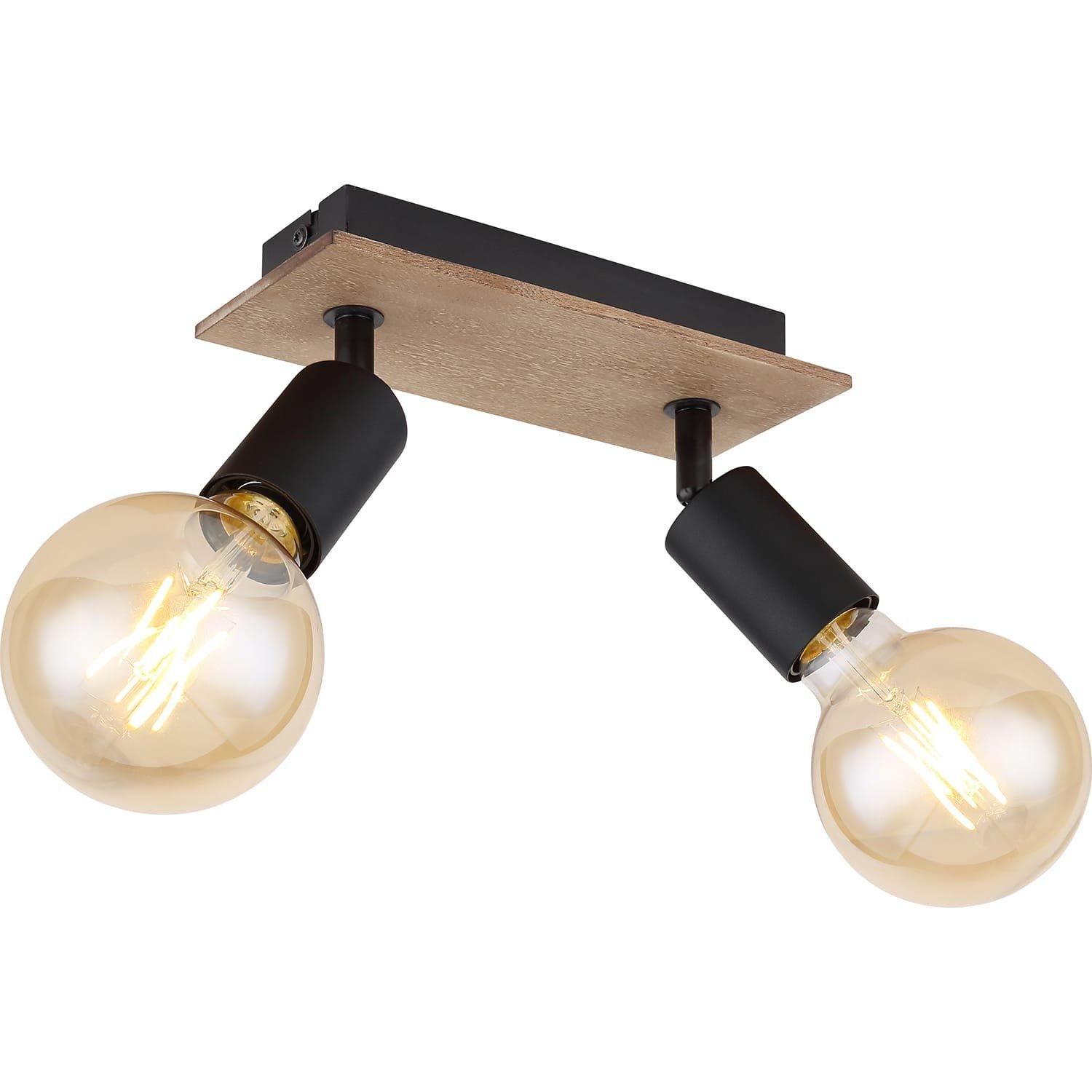 Spot en métal noir, bois marron, LxlxH : 210x90x110mm, exclu 2x E27 40W 230V.