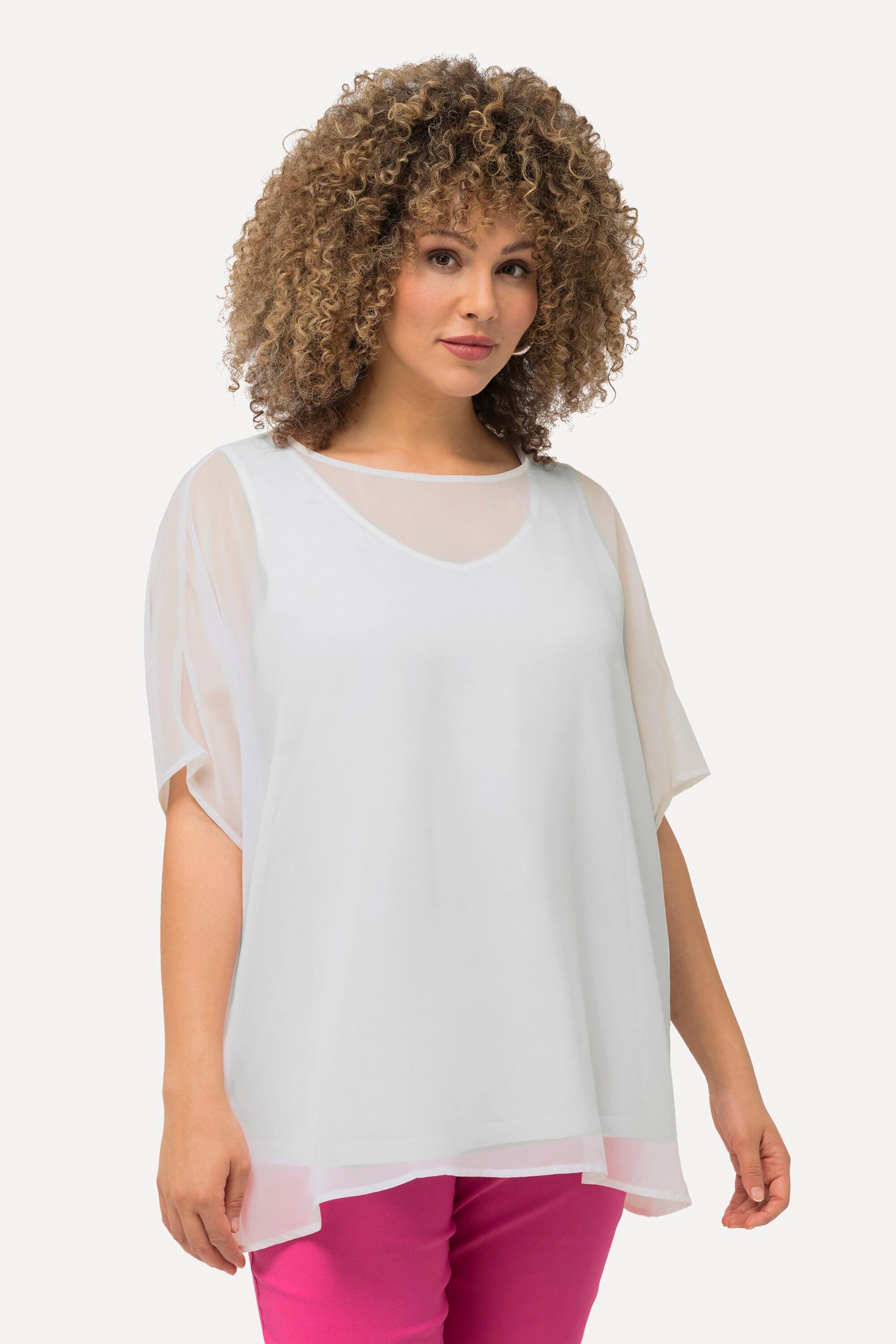 Ulla Popken Blouse Oversized Col Rond Manches Courtes en Chiffon