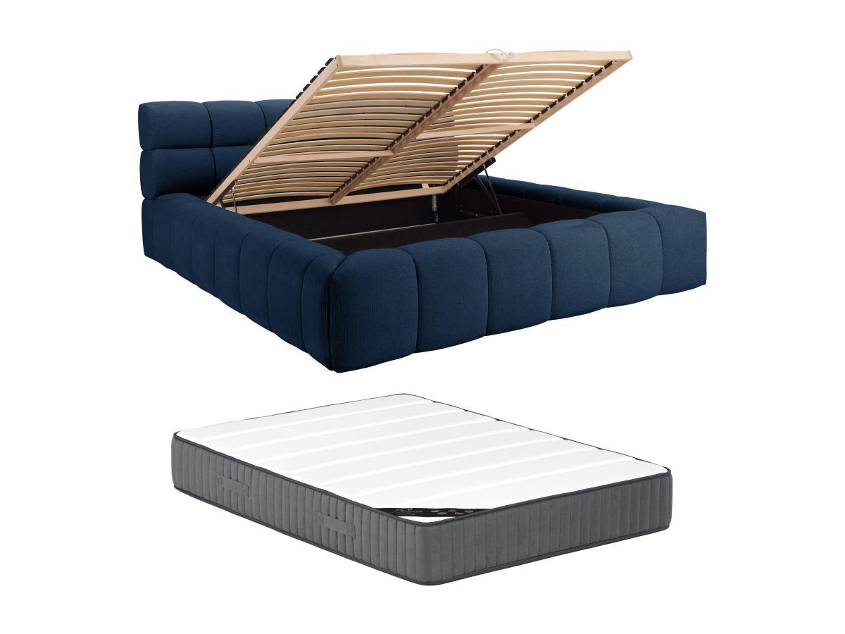 PASCAL MORABITO, Lit coffre 180 x 200 cm - Tissu - Bleu nuit + Matelas - FORVIK II de Pascal Morabito