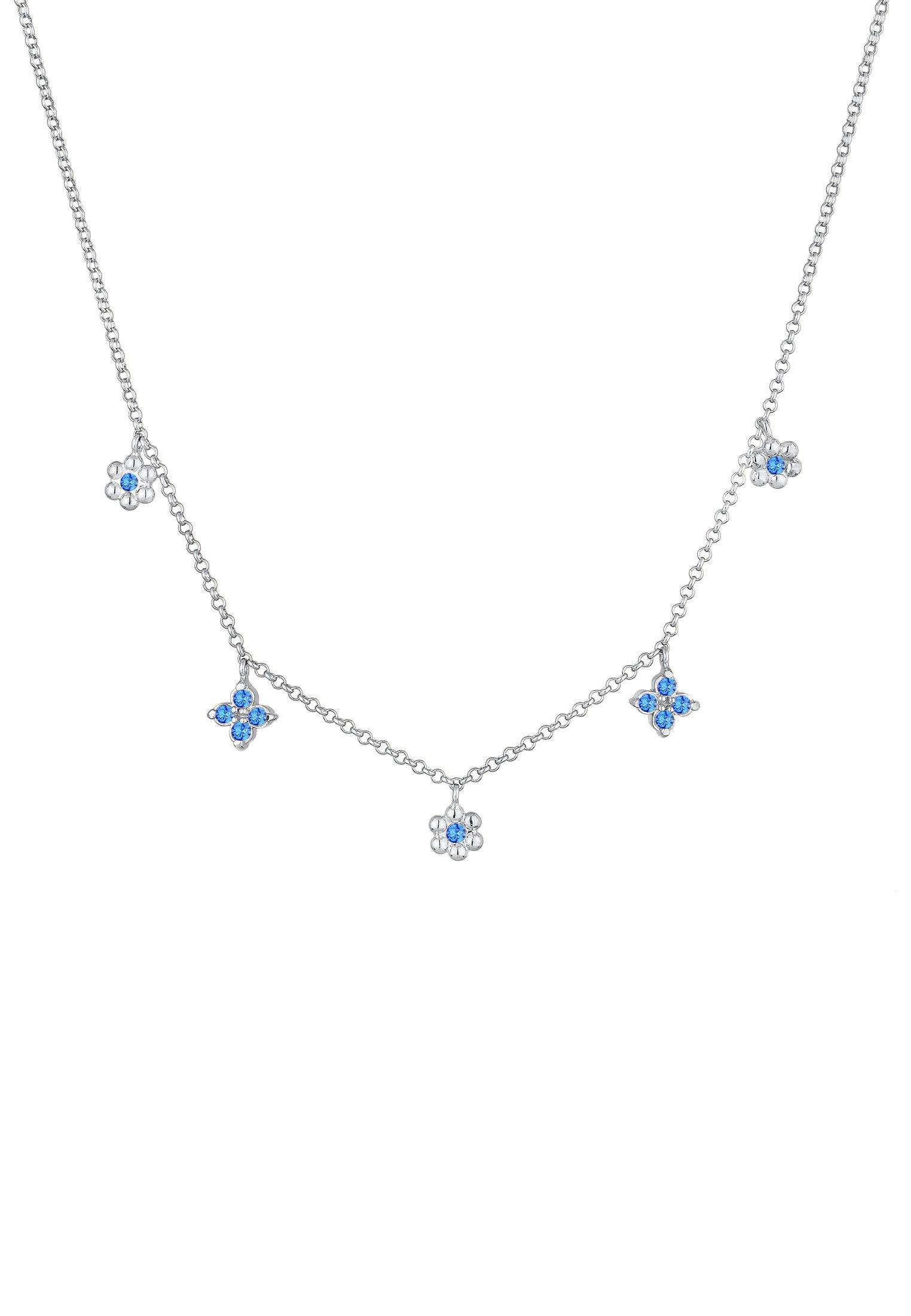 Ce magnifique collier de 40 cm a été fabriqué à la main à partir d'argent sterling 925 / argent sterling 925 doré de la plus haute qualité et est un compagnon étincelant pour les jeunes filles. Les ravissants pendentifs en forme de fleur sont ornés de cristaux bleus. Le look glamour fait de ce bijou un point fort élégant pour l'école et les loisirs.