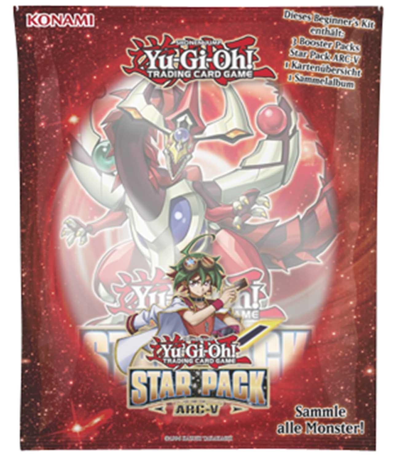 Das Star Pack ARC-V enthält Karten beliebter Themen aus der ersten Staffel der Yu-Gi-Oh! ARC-V TV-Serie, wie Überfallraptor, Künstlerkumpel oder Superschwere Samurai. Duellanten können aber auch nachgefragte Karten aus unterschiedlichen Boostersets, von Legend of Blue-Eyes White Dragon bis hin zu Hidden Arsenal, wiederfi nden, angefangen bei Möbius der Frostmonarch und Polymerisation, bis hin zu Fusion des Edelstein-Ritters, X-Säbel Souza oder Sternzeichen-Kundler Algiedi.