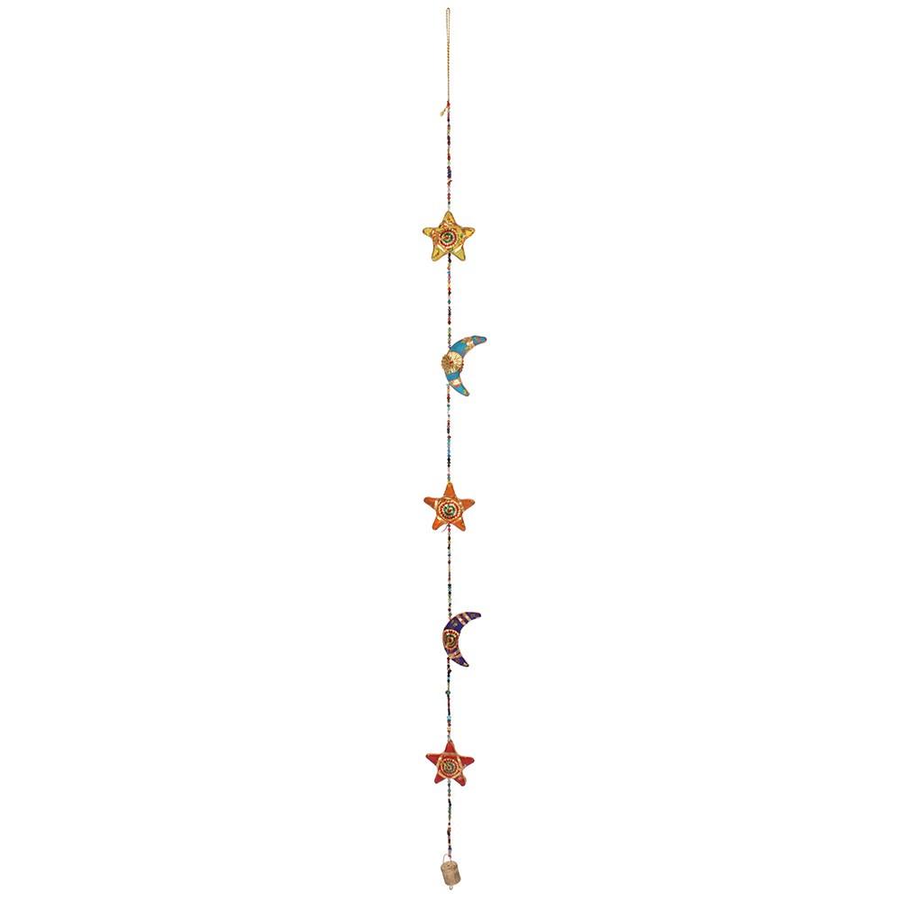 La décoration suspendue « Lunes & Étoiles magiques » de Something Different allie l'artisanat soigné à une forte symbolique. Les lunes et étoiles colorées sont ornées de motifs délicats qui créent une ambiance à la fois ludique et spirituelle. Chaque élément est relié par de petites perles multicolores, tandis qu'une petite clochette au bas de la guirlande complète le design avec une touche sonore subtile. Que ce soit à une fenêtre, au-dessus d'un espace de méditation ou accrochée à un mur, cette suspension apporte une touche de douceur et de poésie à tout intérieur. Elle s'adresse tout particulièrement aux personnes sensibles aux cycles lunaires, à l'astrologie ou à l'aménagement énergétique de l'espace. Chaque pièce étant fabriquée à la main, de légères variations de couleurs et de motifs par rapport aux photos peuvent survenir, ce qui rend chaque exemplaire véritablement unique. Cette décoration est un véritable bijou visuel et sonore, qui se marie à merveille avec d'autres accessoires spirituels et décoratifs.