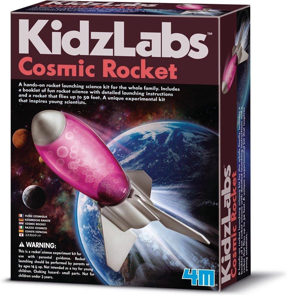 4M KidzLabs : COSMIC ROCKET / F R A N S T A L I G E + N E D E R L A N S T A L I G E PACKAGE, lancement avec vinaigre + bicarbonate de soude (non inclus), boîte 17x22x6cm