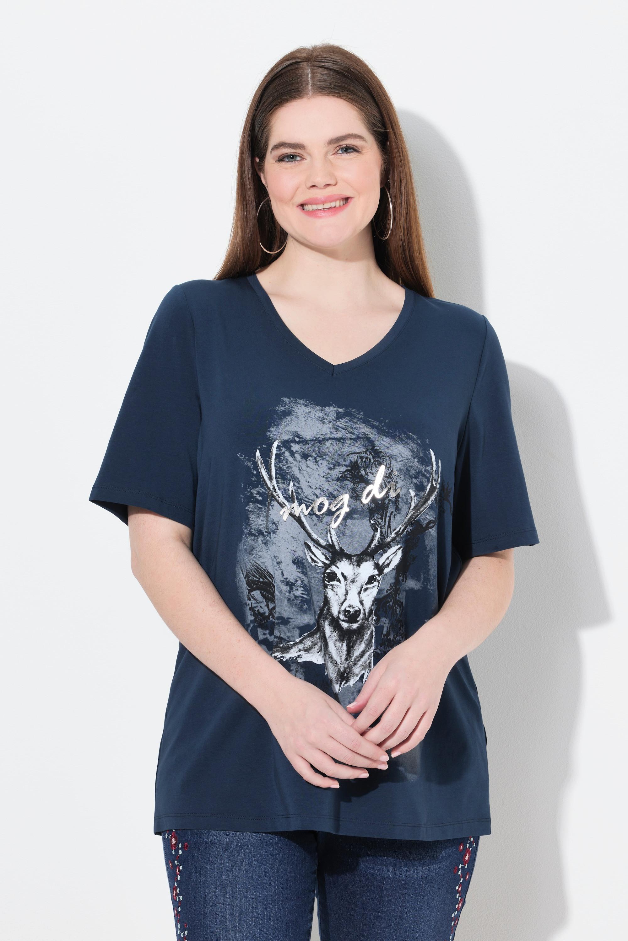 Ulla Popken T-shirt Trachtenmotiv Classic Col V Manches Courtes