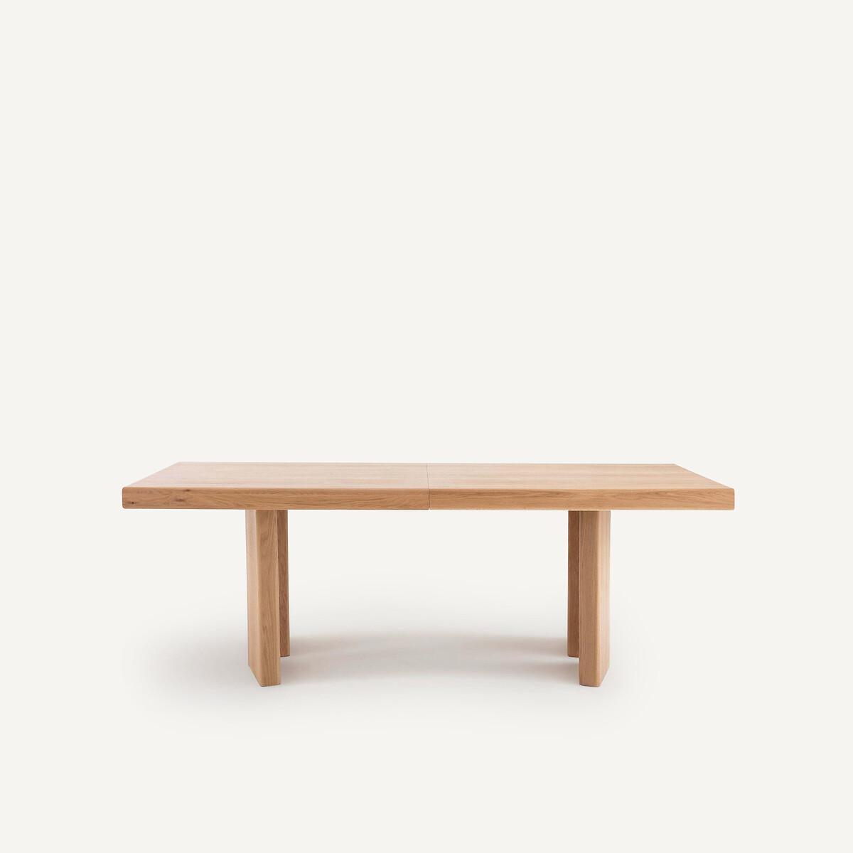 Avec un plateau épais et une structure massive, la table Olaga affirme une identité forte adoucie par la teinte claire du chêne. Son piètement original et ses allonges intégrées viennent confirmer un rôle de table authentique et conviviale.