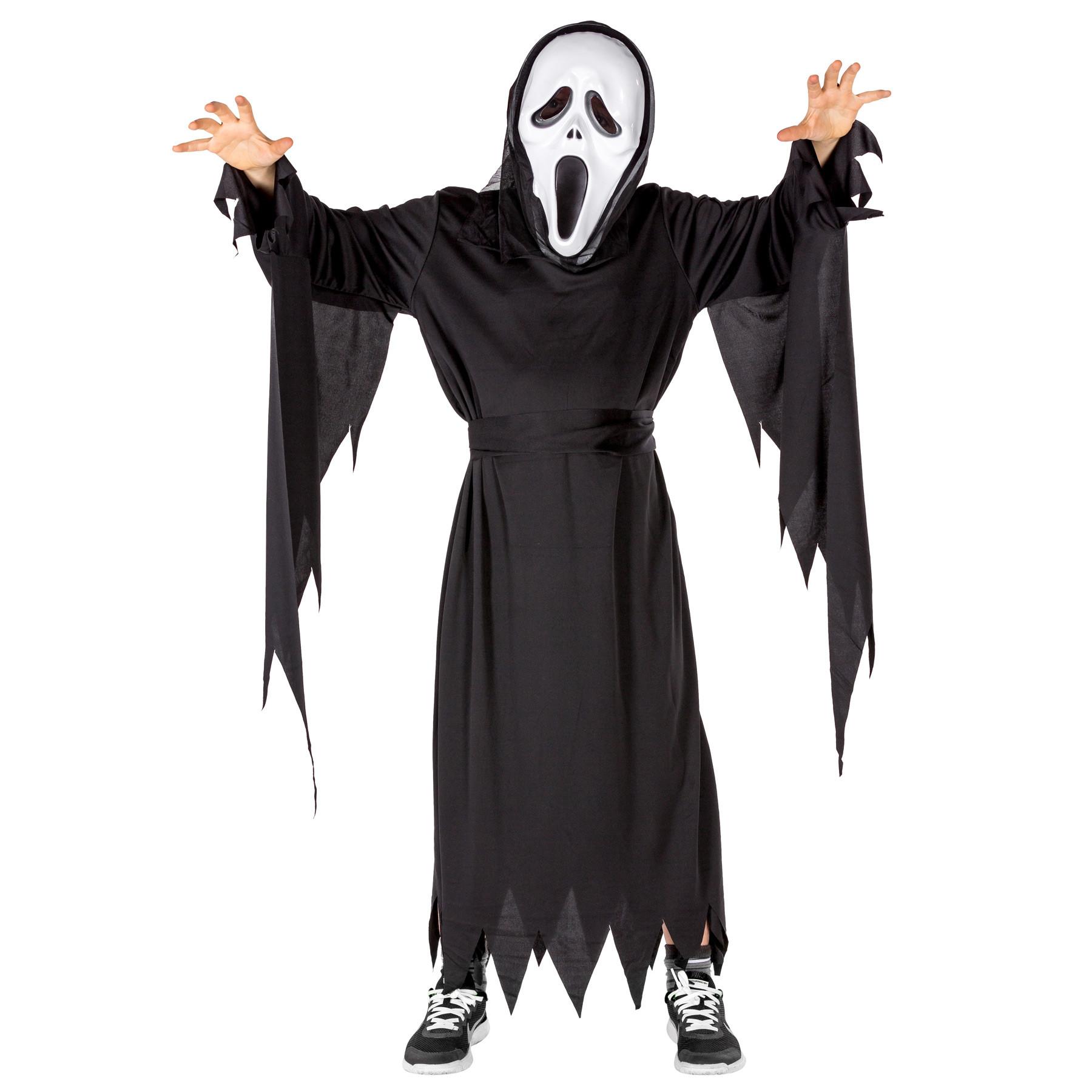 Le costume peur Halloween pour garçons se compose d'une longue tunique lugubre, d'un masque effrayant et d'une ceinture à nouer. Matériau : 100 % Polyester.