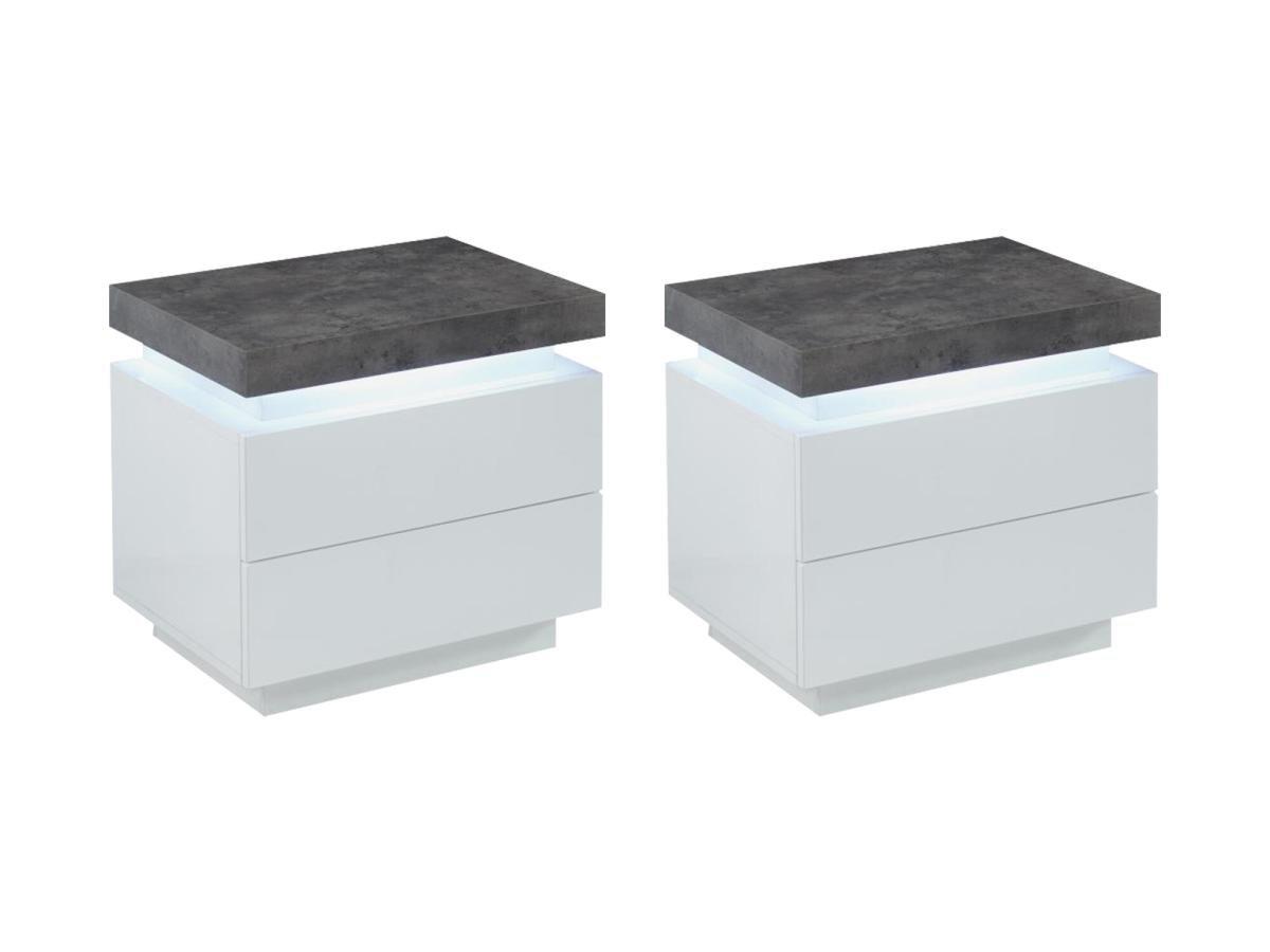 Vente-unique, Lot de 2 tables de chevet - 2 tiroirs - MDF Laqué - Avec LEDs - Coloris : Blanc et béton - HALO II