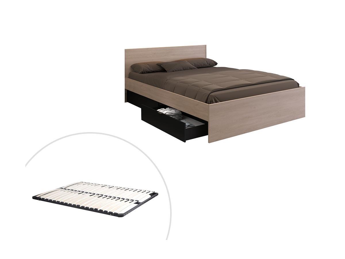 Vente-unique, Lit avec 2 tiroirs 160 x 200 cm - Coloris : Naturel et noir + sommier - VELONA