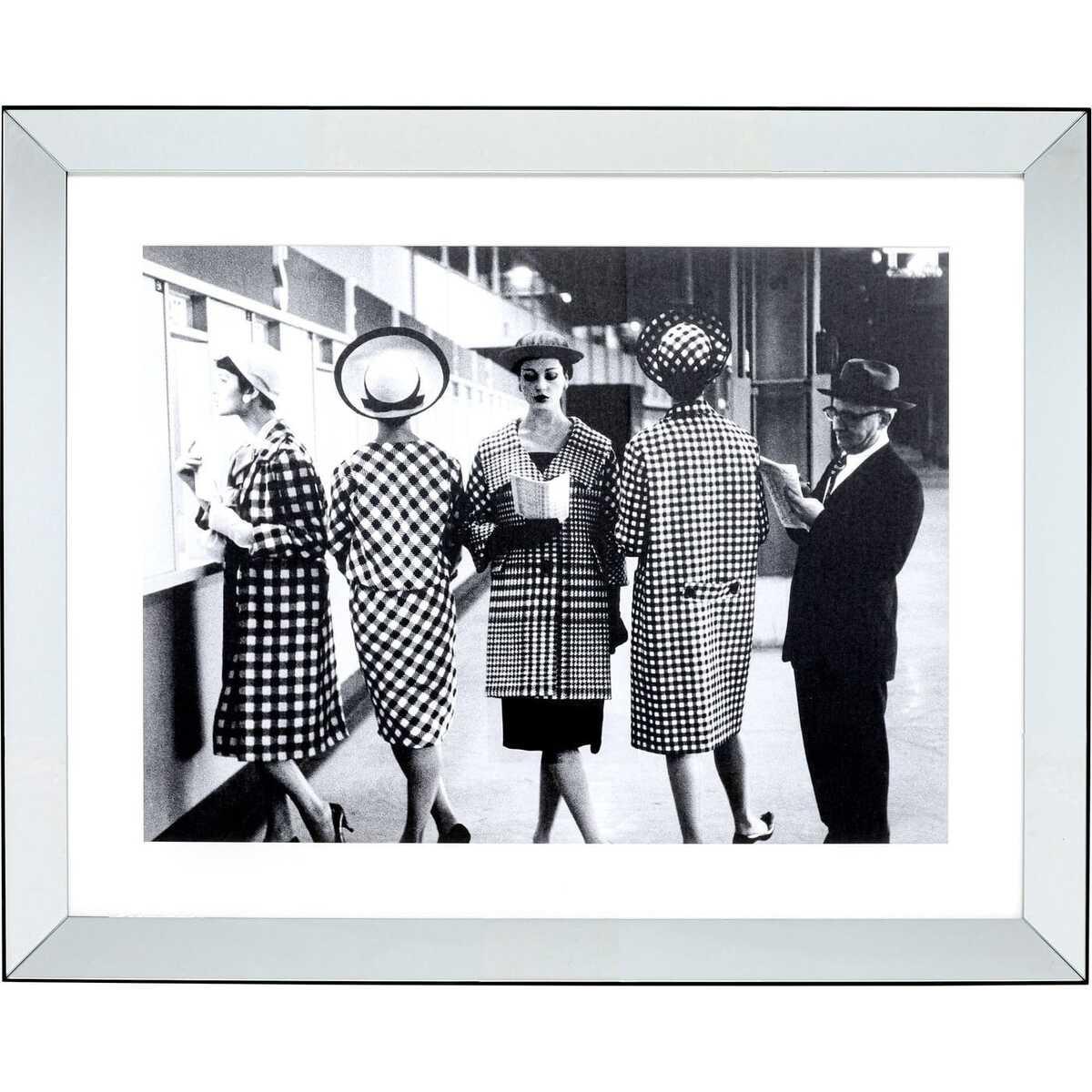 Quatre dames présentent la dernière collection de mode - et le tout est assaisonné d'une pointe d'humour. Cette image est typique de la photographie de mode des années 50 et confère à chaque pièce un glamour féminin - avec un clin d'œil. Combinez cette photo encadrée avec d'autres motifs en noir et blanc pour créer un mur d'images impressionnant.Photographie encadrée à caractère artistique sur papier d'art de haute qualité en noir et blancLe tableau mural a un aspect très haut de gamme grâce au cadre en miroir avec bord extérieur noirPrêt à accrocher grâce aux fixations murales prémontéesUn passe-partout fin augmente l'effet de profondeur de l'impression d'art, dimensions du motif 60 x 80 cmLe motif photo au format paysage s'adapte merveilleusement au look rétro et aux pièces monochromes et modernesInformations sur le produit Impression de l'image sur : Papier d'art, cadre : Polyresin, pour montage mural horizontal, format de l'image en cm 80x60