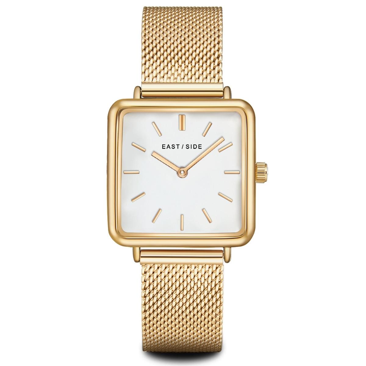 Vous avez vos coins et vos bords et en êtes fier? Soulignez ensuite votre personnalité avec un accessoire comme «Edgy» comme vous: La montre de la marque de l'étiquette de l'étiquette est garantie avec son cas carré frappant. Contrairement à la forme extraordinaire, le cadran avec des indicateurs Strich et des barreaux en filigrane est discret à l'arrière-plan. Avec ces dames regardent une pointe de New York souffle à travers votre boîte à bijoux, inspirée du quartier de la ville à la mode Eastside de la métropole. Alors osez la différence! Le revêtement IP en or jaune classique donne une touche distinguée à la fois le boîtier et le bracelet en acier inoxydable de Milanaise Optics. L'ensemble de haute qualité est arrondi par un mouvement de quartz précis.