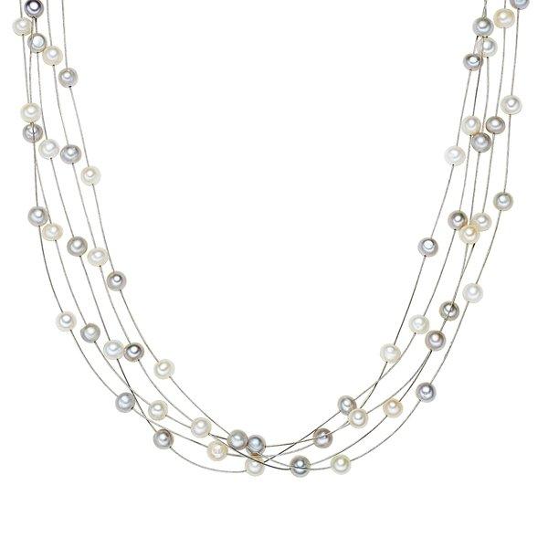 Des pièces uniques sont inévitablement devenues un casseur oculaire - de sorte que vous puissiez décrire les perles baroques de cette perle Collier de Valero Pearls. Le nom "Perles baroques" n'a rien à voir avec l'époque, mais décrit la forme de perles de culture d'eau douce irrégulièrement cultivées, qui sont plus convoités aujourd'hui. Ici, les perles coupées à la main avec des lustres fortes ont été élevées à cinq brins de fil d'acier inoxydable, de sorte qu'un collier puristique soit créé, les individualistes de bijoux sont immédiatement proches du cœur. Un mousqueton d'argent sterling en panne de rhodium assure une manipulation facile.