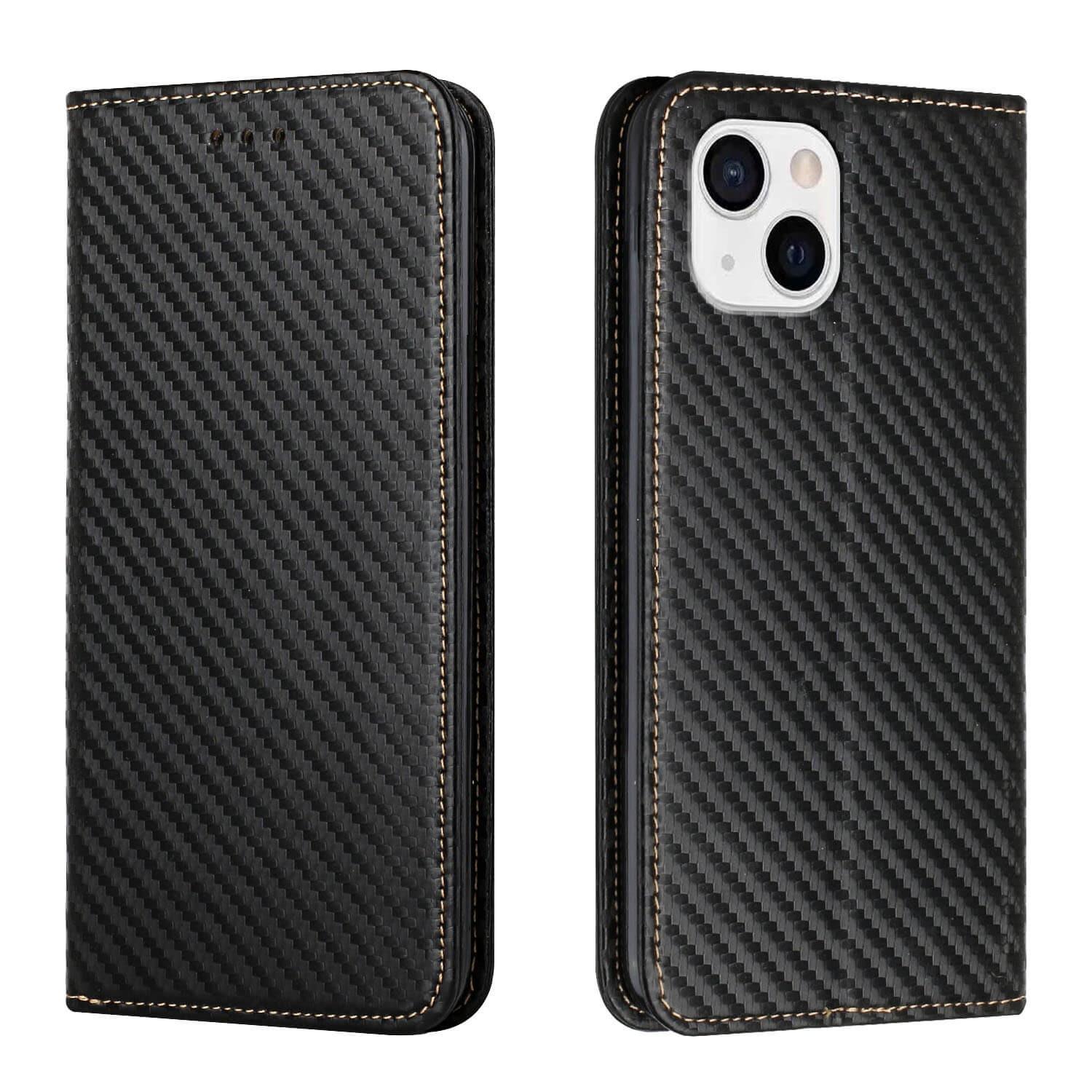 Carbon Look Flip Case Étui pour téléphone portable pour iPhone 14 Plus