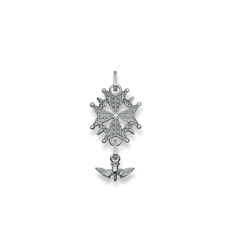 MUAU Schmuck, Pendentif croix huguenote en or blanc 750, 33x15mm