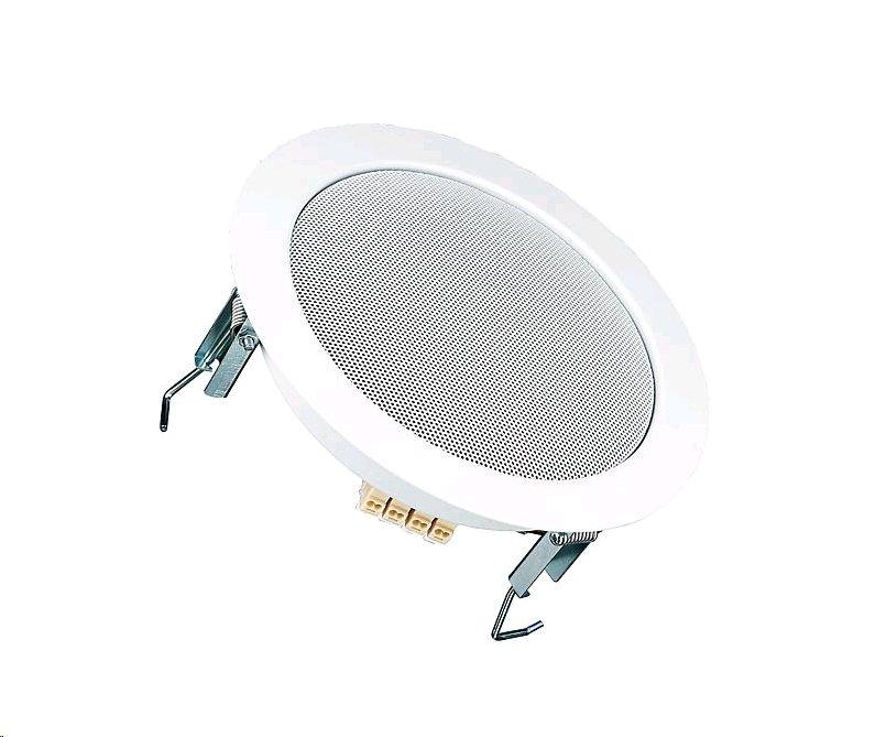 17 cm (6,5 Zoll) Deckenlautsprecher mit korrosionsbeständigem Abdeckgitter (RAL 9010), geeignet für den Einbau in Unterdecken aller Materialien, bestückt mit einem Breitbandlautsprecher, Trafoanpassung 6, 3, 1,5 W, Schalldruckpegel 101 dB (1 W/1 m) @ 3260 Hz, mittlerer Schalldruckpegel 93 dB (1 W/1 m), max. Schalldruckpegel 101 dB (6 W/1 m), Abstrahlwinkel (-6 dB) 57°/4000 Hz, Resonanzfrequenz fs 100 Hz, Schallwandöffnung 200 mm, Schutzklasse IP X3, Temperaturbereich -40 ... 110 °C