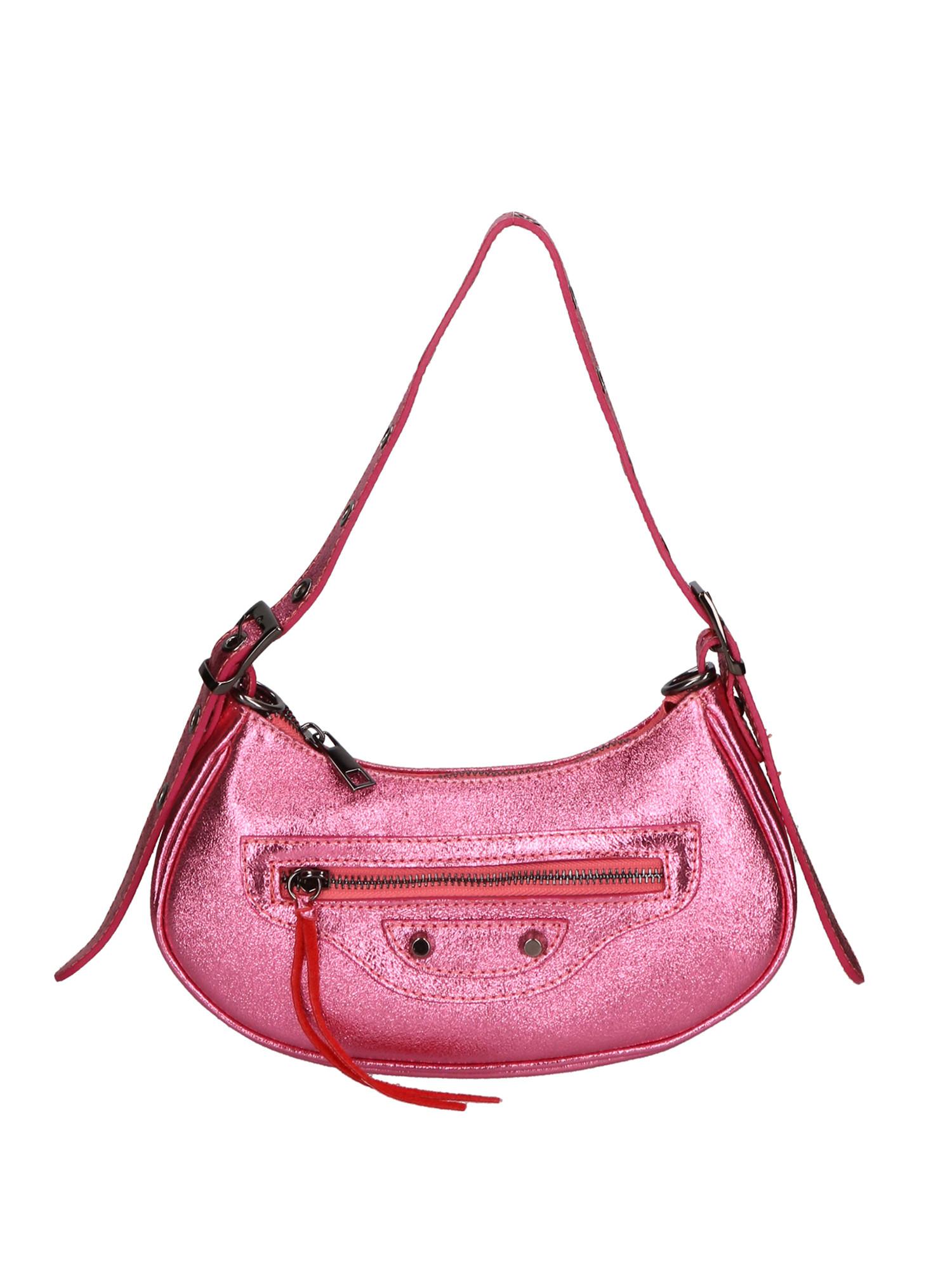 Sac à bandoulière à compartiment unique pour femme en cuir laminé, avec bandoulière amovible.Produit artisanal italien.Made in Italy