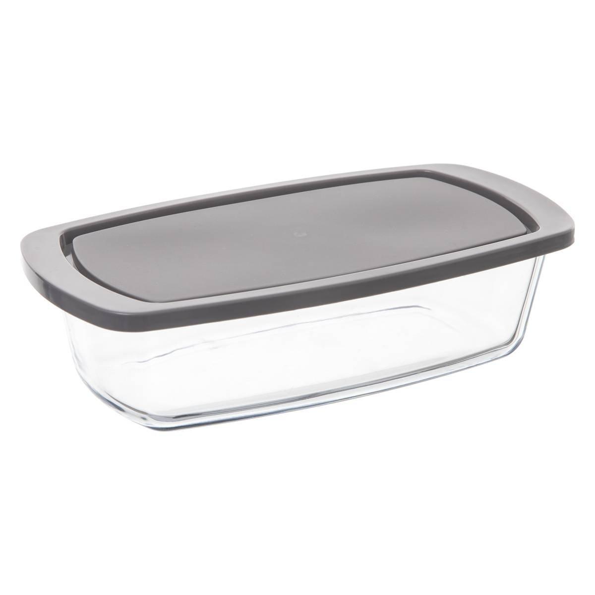 - Plat en verre avec couvercle gris pour la cuisson