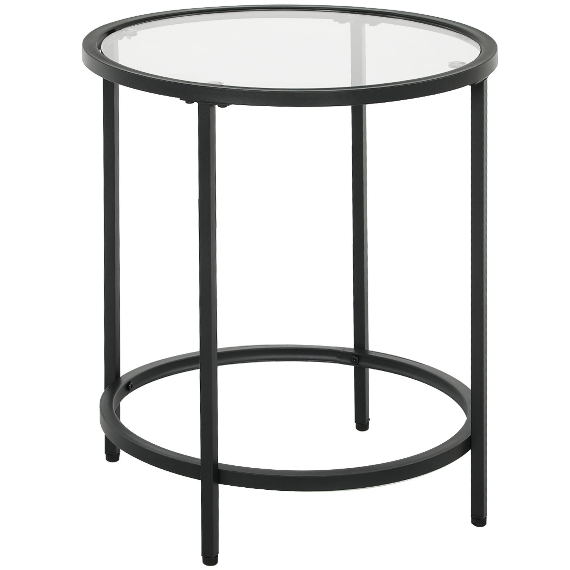 Ajoutez une élégance moderne à votre espace de vie avec la table basse HOMCOM. Le plateau en verre trempé transparent et la structure en métal robuste avec revêtement en poudre le rendent idéal pour une utilisation comme petite table basse ou table de chevet. Les repose-pieds protègent également vos sols des rayures. Profitez de ce meuble pratique et élégant.