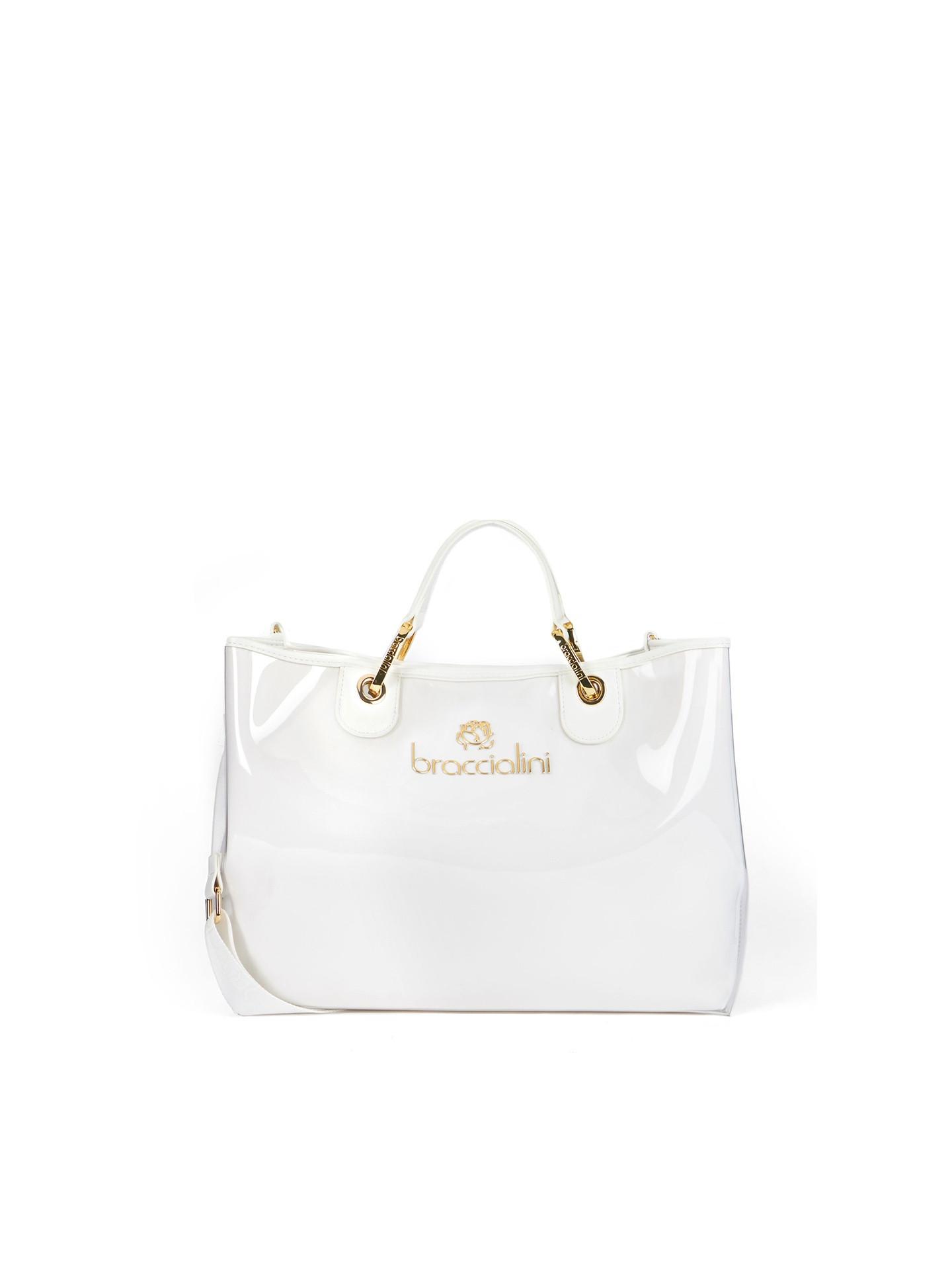 Ce sac à main offre un accessoire élégant et pratique pour un usage quotidien. Le design présente une section supérieure transparente avec une partie inférieure solide, créant une esthétique moderne. Le sac est équipé de poignées robustes et d'une bandoulière détachable, offrant des options de transport polyvalentes.