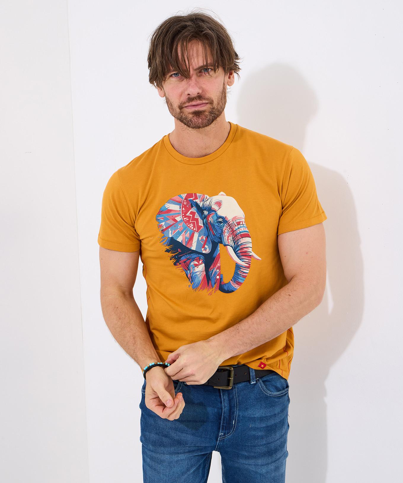 Ce t-shirt graphique présente un imprimé éléphant saisissant d'inspiration aztèque, offrant un design unique et accrocheur. Le haut à manches courtes est un ajout polyvalent à toute garde-robe décontractée, offrant à la fois confort et style.