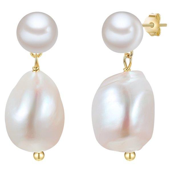 Vous aimez porter des boucles d'oreilles contemporaines, mais élégantes? Cette création féminine de l'étiquette met en évidence Munich enchants non seulement par la brillance irisé des perles de culture d'eau douce, mais également avec un design moderne. Bouton et perles baroques se combinent à un duo Perle chatoyant, qui balance doucement sur le lobe d'oreille. Les boucles d'oreilles sont fixées avec une fermeture à plug-in confortable. La fermeture et les attaches sont constituées de 925 argent sterling et raffinées d'or jaune classique. Un excellent cadeau de qualité de bijoux pour les amateurs de perles conscientes de la tendance!