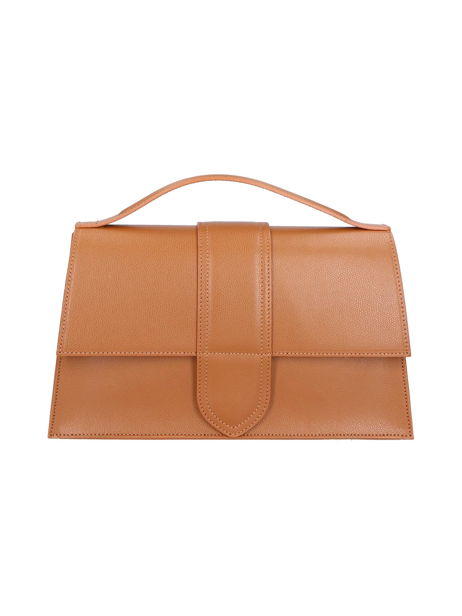 Ce sac à main présente un design classique avec une silhouette structurée, ce qui en fait un accessoire polyvalent pour diverses occasions. Le sac est équipé d'une poignée supérieure pour un transport facile et d'une fermeture à rabat avec un détail de sangle décoratif. Ce sac pour femme est fabriqué en cuir grainé à la main avec un seul compartiment. Il est livré avec une bandoulière amovible. C'est un produit artisanal italien en cuir véritable.