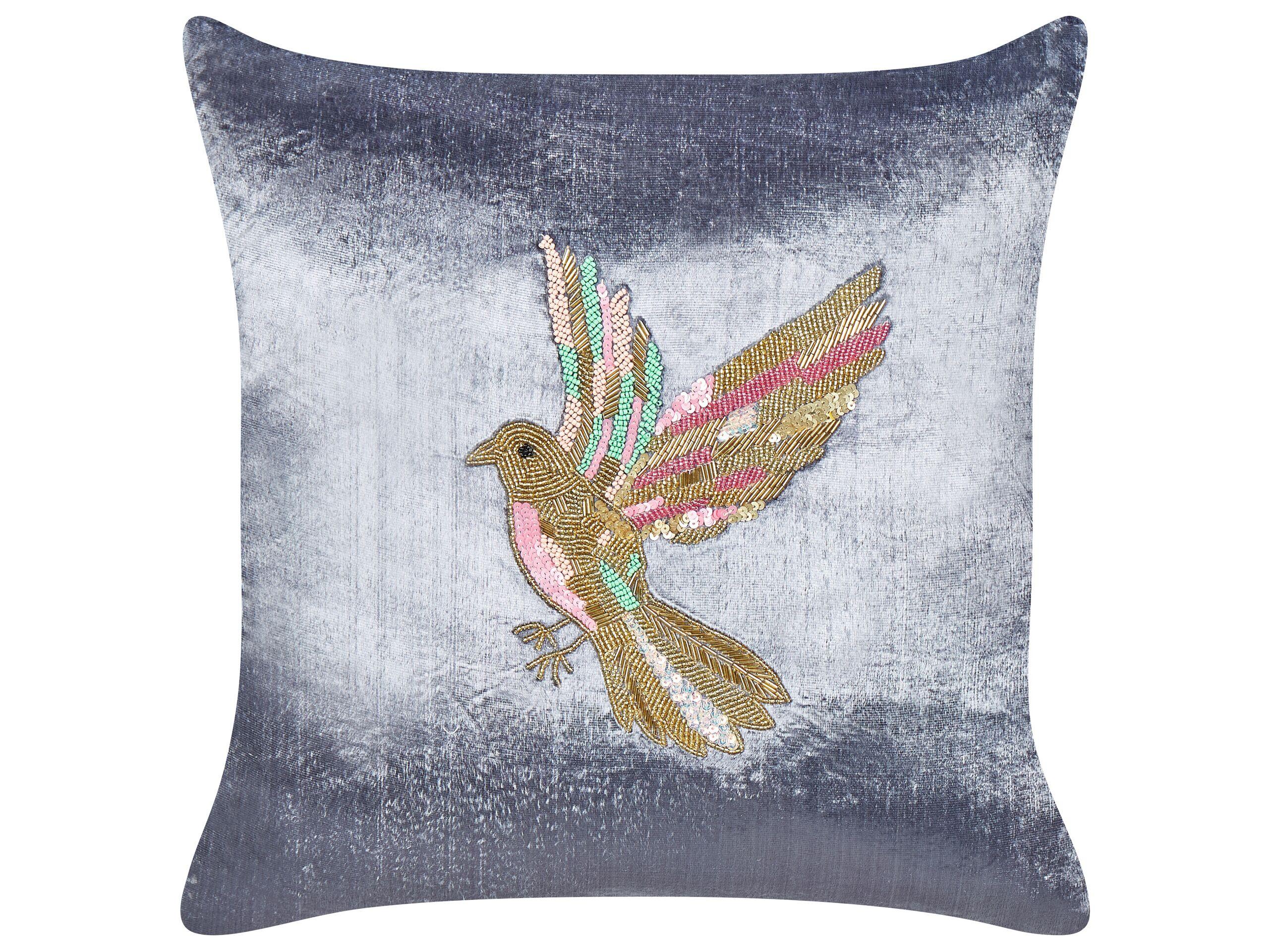 Coussin décoratif carré. Améliorez votre décoration intérieure avec ce coussin attrayant. Fabriqué en velours doux et agréable au toucher, ce coussin présente un motif d'oiseau brodé et coloré, qui donne une touche de fraîcheur et de modernité au salon ou à la chambre à coucher. Le coussin est déhoussable, ce qui le rend facile à nettoyer.