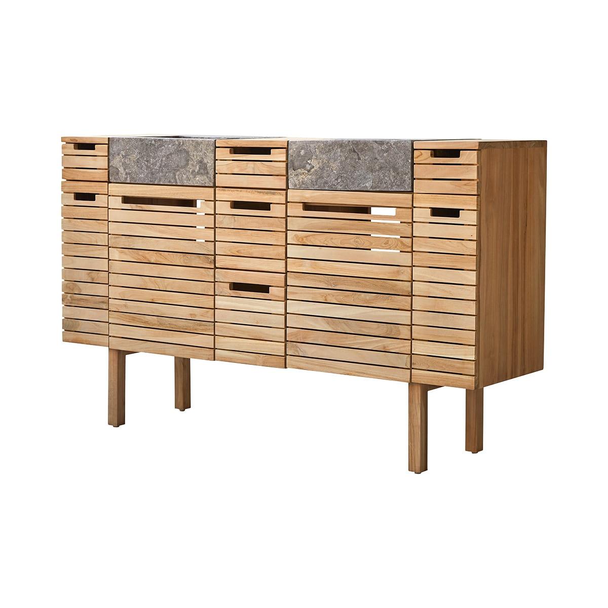 Tikamoon, Meuble salle de bain en teck massif et marbre 150 cm Slats