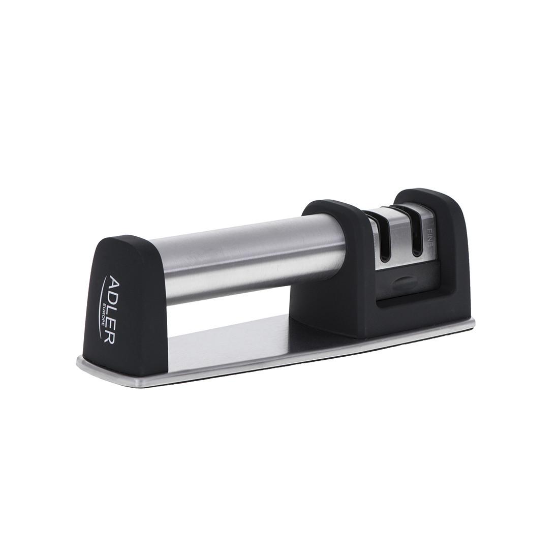 Das Schärfen in mehreren Schritten ermöglicht eine bessere Qualität des Endprodukts. Im ersten Schritt kann ein Grundschliff mit dem Hartmetallschärfer vorgenommen werden. Für den Feinschliff wird das Messer mehrfach durch den Keramikschärfer durchgezogen.