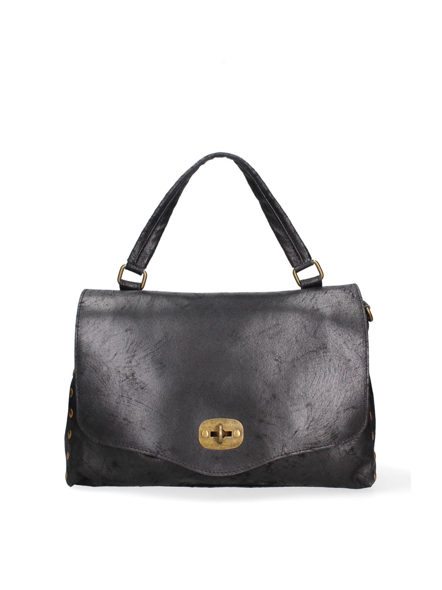 Ce sac à main présente un design classique avec une touche moderne, ce qui en fait un accessoire polyvalent pour diverses occasions. Le sac est orné de clous métalliques sur les côtés, ajoutant une touche de sophistication audacieuse à son apparence générale. Il est équipé d'une poignée supérieure robuste pour un transport confortable et d'une fermeture à tourniquet sécurisée sur le rabat avant pour garder les effets personnels en sécurité.