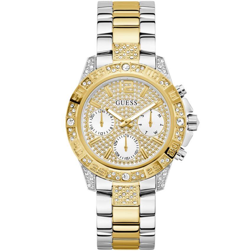 La montre pour femme guess gw0771l3 majesty est une combinaison magistrale de luxe et de fonctionnalité, impressionnant par son design éclatant et son artisanat précis. Cette élégante montre chronographe se distingue par ses détails scintillants et son design exclusif, idéale pour les femmes qui souhaitent se démarquer. Le cadran doré est un véritable point fort. Parsemé de nombreuses pierres blanches scintillantes comme de petites étoiles, il ajoute une touche de glamour à la montre. Laffichage analogique indique les heures, les minutes et les secondes, complété par un affichage multifonctions pratique qui sintègre harmonieusement au design. Le boîtier en acier inoxydable arbore une finition argentée élégante et est orné de pierres de zirconia blanches supplémentaires. Ces accents scintillants mettent parfaitement en valeur la lunette et le boîtier. Avec un diamètre denviron 40 mm et une épaisseur de 10,9 mm, la montre offre une présence audacieuse mais féminine au poignet. Le fond de boîtier en acier inoxydable, gravé du logo du fabricant, souligne la qualité et le style de la montre. Le bracelet, conçu dans un élégant mélange bicolore dor et dargent, complète parfaitement lapparence luxueuse. Fabriqué en acier inoxydable, il est robuste et durable. Avec une largeur de 20 mm et une longueur denviron 19 cm, le bracelet offre un grand confort de port. La fermeture déployante assure une fixation sécurisée et une utilisation pratique. Avec une étanchéité de 5 atm (50 m), la montre est résistante aux éclaboussures et convient parfaitement à un usage quotidien. Le verre minéral trempé protège efficacement le cadran contre les rayures et lusure, tandis que le mouvement à quartz précis garantit une mesure du temps fiable. La montre guess gw0771l3 majesty est bien plus quun simple accessoire cest une pièce luxueuse qui attire instantanément le regard grâce à ses pierres de zirconia scintillantes et son design bicolore harmonieux. Parfaite pour des occasions spéciales ou pour enrichir le quotidien dune touche délégance.