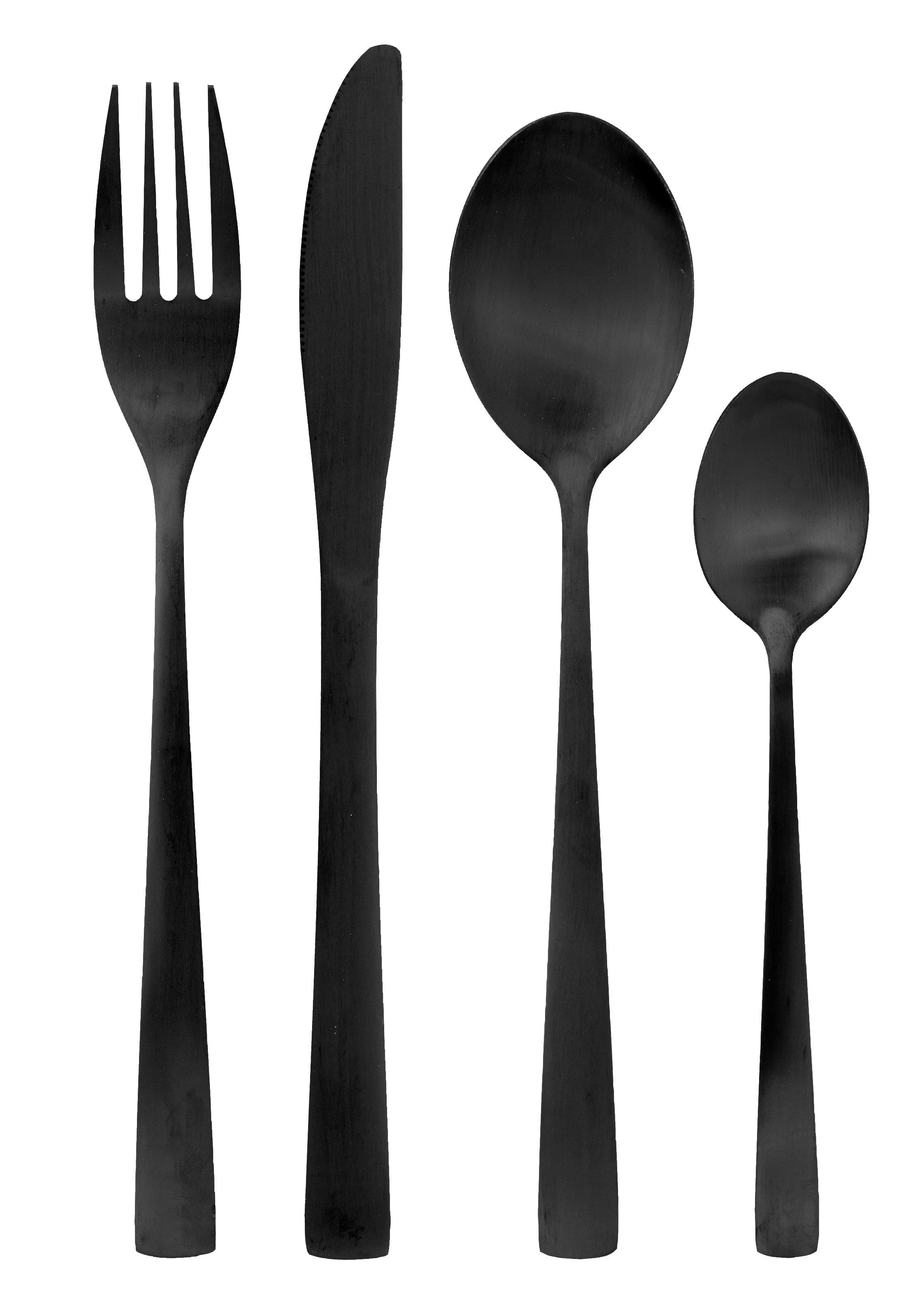 Ensemble de 16 couverts noirs en acier inoxydable de haute qualité.