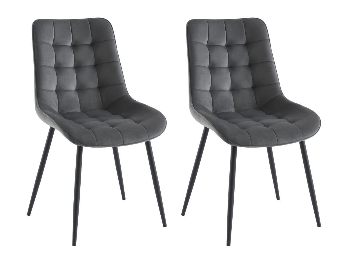 Vente-unique, Lot de 2 chaises matelassées - Velours et métal noir - Gris - OLLUA