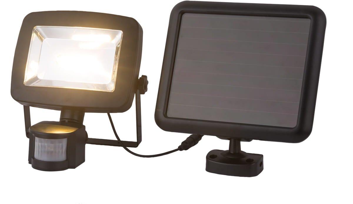 Il s'agit d'une lampe solaire en plastique noir avec un équipement pratique. Si vous souhaitez éclairer la zone extérieure avec la lampe, vous n'avez pas besoin d'une connexion électrique supplémentaire, car la lampe dispose d'un panneau solaire supplémentaire. Il a une ligne d'alimentation vers le radiateur d'une longueur de 470 cm. Pour que le luminaire soit idéal pour une utilisation à l'extérieur, il a la classe de protection IP 44. Un capteur avec un détecteur de mouvement qui s'étend de 3 à 5 m à un angle de 180 est également intégré, ainsi qu'un interrupteur. Le rendement lumineux de la lampe solaire est de 500 lumens et reproduit une agréable couleur de lumière blanche chaude de 3000 K.