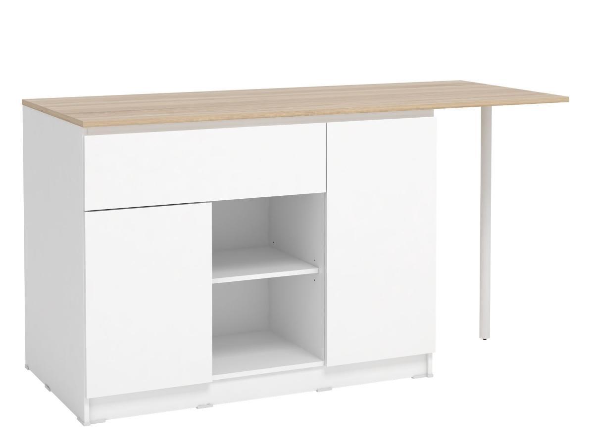Optez pour l'îlot central TUNORI afin d'optimiser votre cuisine. En effet, doté de deux portes donnant sur des espaces de rangement, d'un tiroir et de deux niches, cet ilot de cuisine offre praticité et fonctionnalité pour une cuisine toujours plus ordonnée ! Mais encore, il a l'avantage d'arborer un style contemporain, mêlant à la fois le chaleureux du coloris naturel avec la sobriété et luminosité du blanc, qui sauront parfaitement s'adapter à votre intérieur.