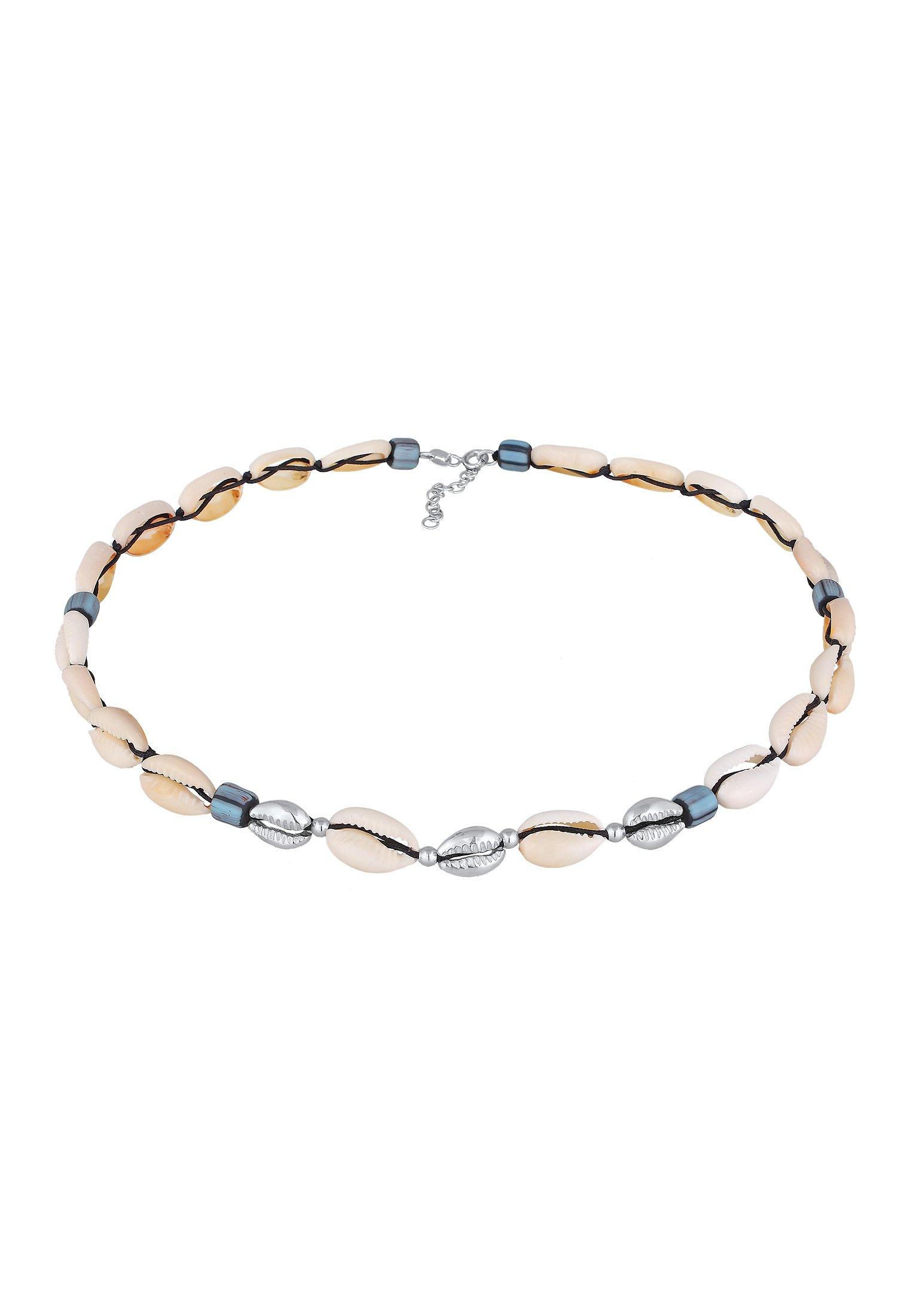 Elli, Collier Femmes Choker Verre Perles Style Surfeur Avec Coquillage Cauri