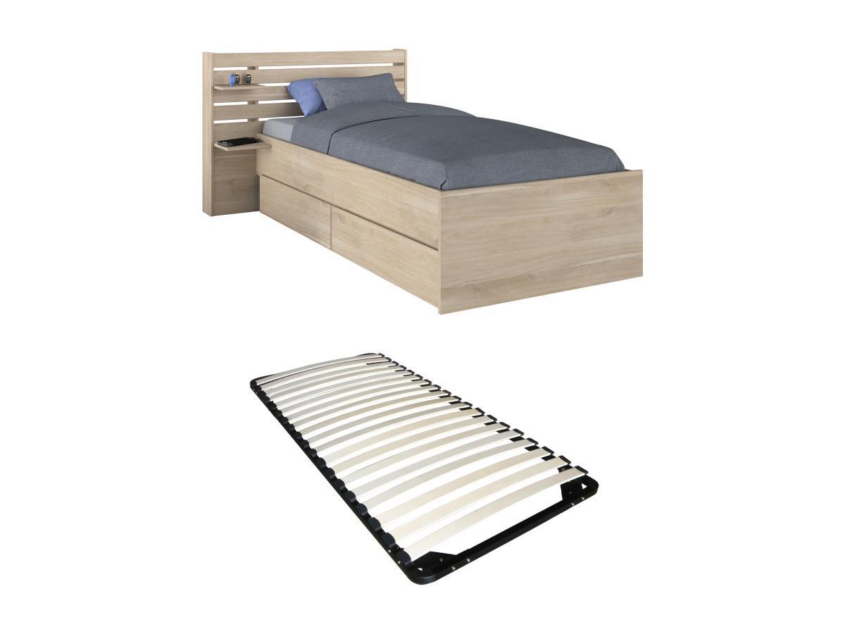 Vente-unique, Lit 90 x 200 cm avec rangements - Coloris : Naturel + Sommier - TENALIA