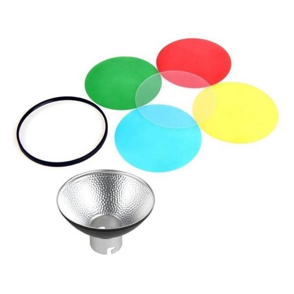 Type de produit : Réflecteur, Fabricants compatibles : GodoxCompatible avec la série Godox Wistro – y compris AD180 / AD360 / AD360II et AD200Comprend cinq filtres de couleur différents : blanc doux, jaune, rouge, bleu et vertDiamètre du réflecteur : 104 mmContenu de la livraison :1x Réflecteur mini Godox AD2005x Filtres en gel de couleur