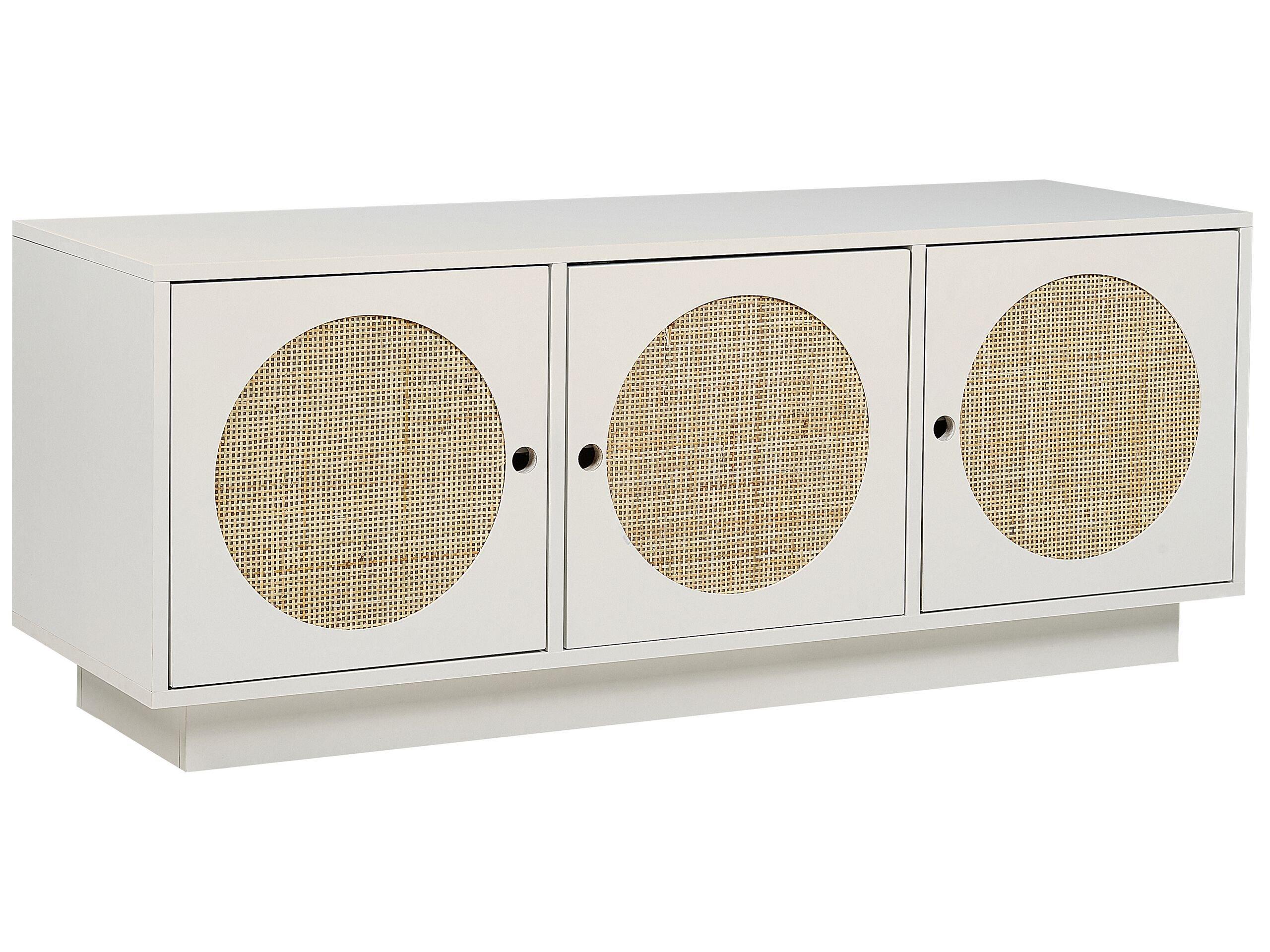 Buffet à façade décorative ronde en rotin. Parfait pour un salon rétro ou éclectique, ce buffet blanc est une combinaison de style unique et de fonctionnalité. Les façades présentant un magnifique tressage en rotin attirent l'attention et lui confèrent un caractère vintage. Trois étagères spacieuses permettent de ranger toutes sortes d'accessoires. Des trous en guise de poignées offrent une solution simple et pratique pour faciliter l'accès et ajouter une touche de modernité à votre intérieur.