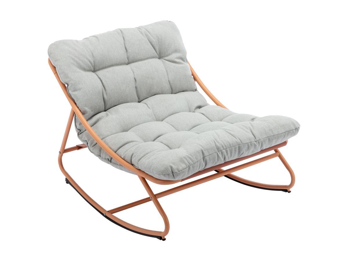 Vente-unique Fauteuil de jardin à bascule en acier - Orange et coussin gris clair - SARANI de MYLIA