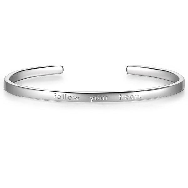 Vous connaissez sûrement des situations dans lesquelles vous êtes indécis. Ce bracelet enchanteur de l'étiquette "branchement de Munich" devrait vous rappeler de l'entendre sur votre sentiment d'intestin: la belle devise "suivre votre cœur" a été gravée dans un bracelet très poli de 925 Sterling Argent et vous accompagne tous les jours avec des décisions difficiles. Une rhodiumisation de haute qualité protège l'accessoire de chice avant de commencer. Conseil: Le design minimaliste est idéal pour la combinaison avec vos autres marques préférées. Suivez votre coeur où votre sentiment vous conduit!