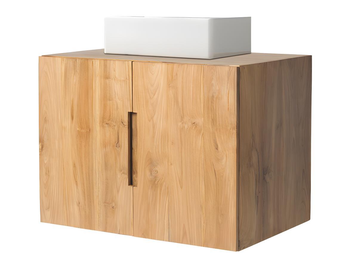 Vente-unique, Meuble de salle de bain suspendu en teck avec simple vasque - 80 cm - SAWAN