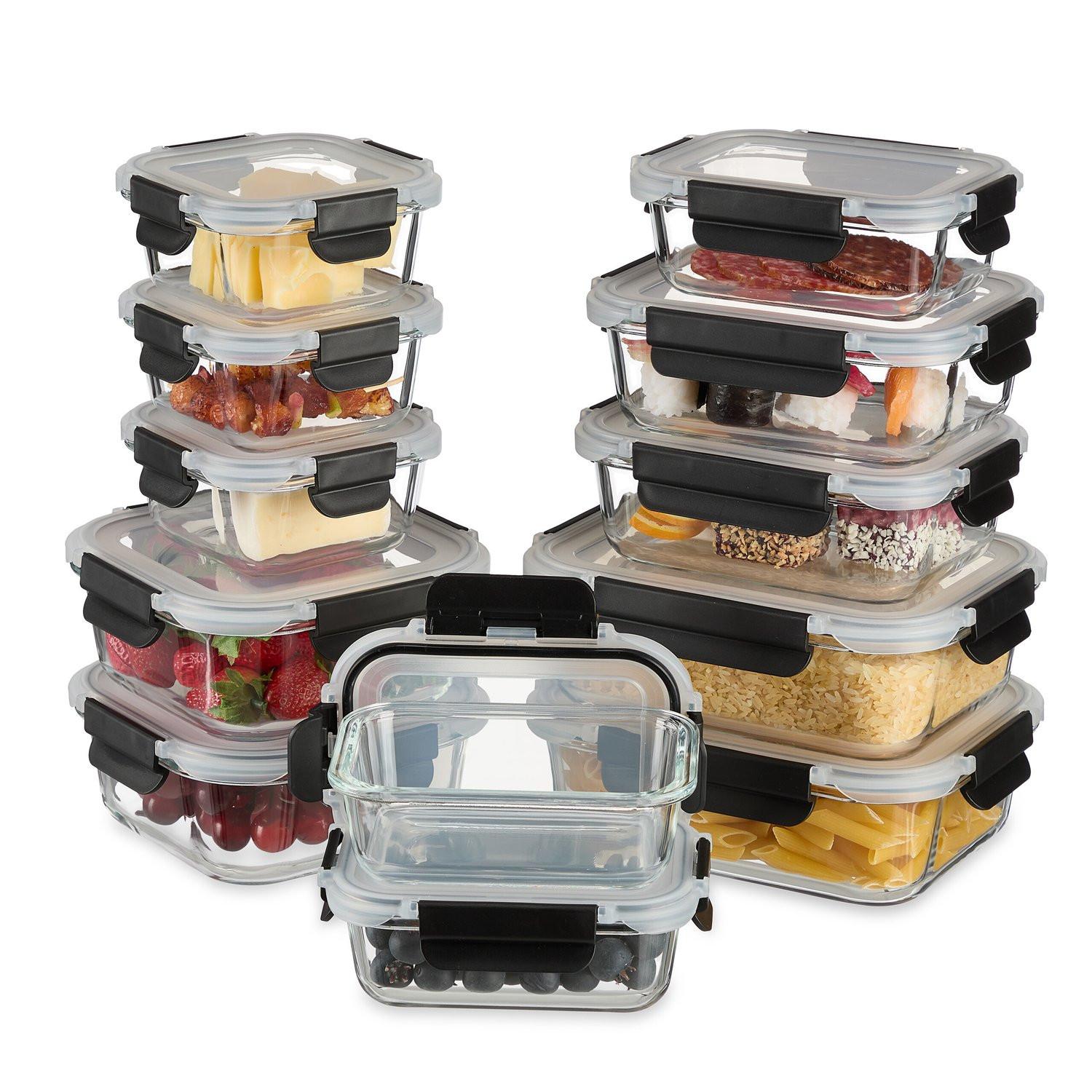 - L'ensemble comprend 12 récipients en verre avec couvercles en plastique.