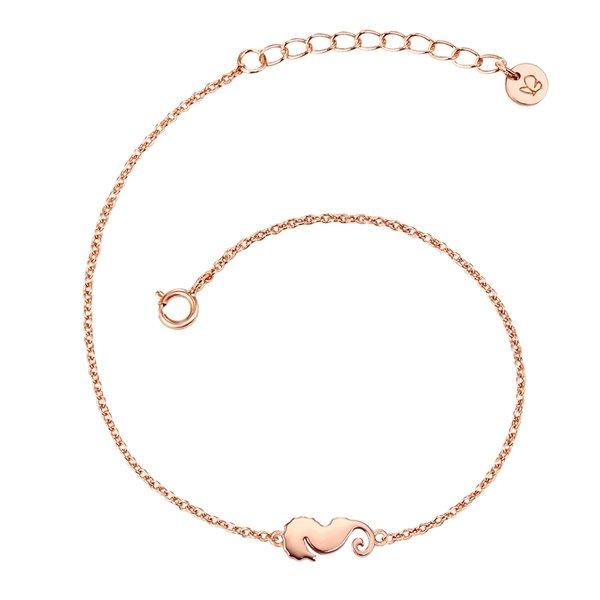 Doux et fort en même temps que le hippocampe danse dans les océans, bien protégé par son fumier exceptionnel, de nombreuses couleurs de camouflage et son corps blindé. Souhaitez-vous être inspiré par la tactique de l'animal de pouvoir spirituel? Ensuite, le fantastique bracelet de motif de la marque de la marque Munich en tant que compagnon sur le poignet et sentez son harmonie et sa protection. Le symbole de Seahorse flotte sur une charte d'ancrage en filigrane, ajustable de longueur, en argent sterling doré rose - parfait pour les fans de la brièveté de l'or branché flatteur chaque teint.