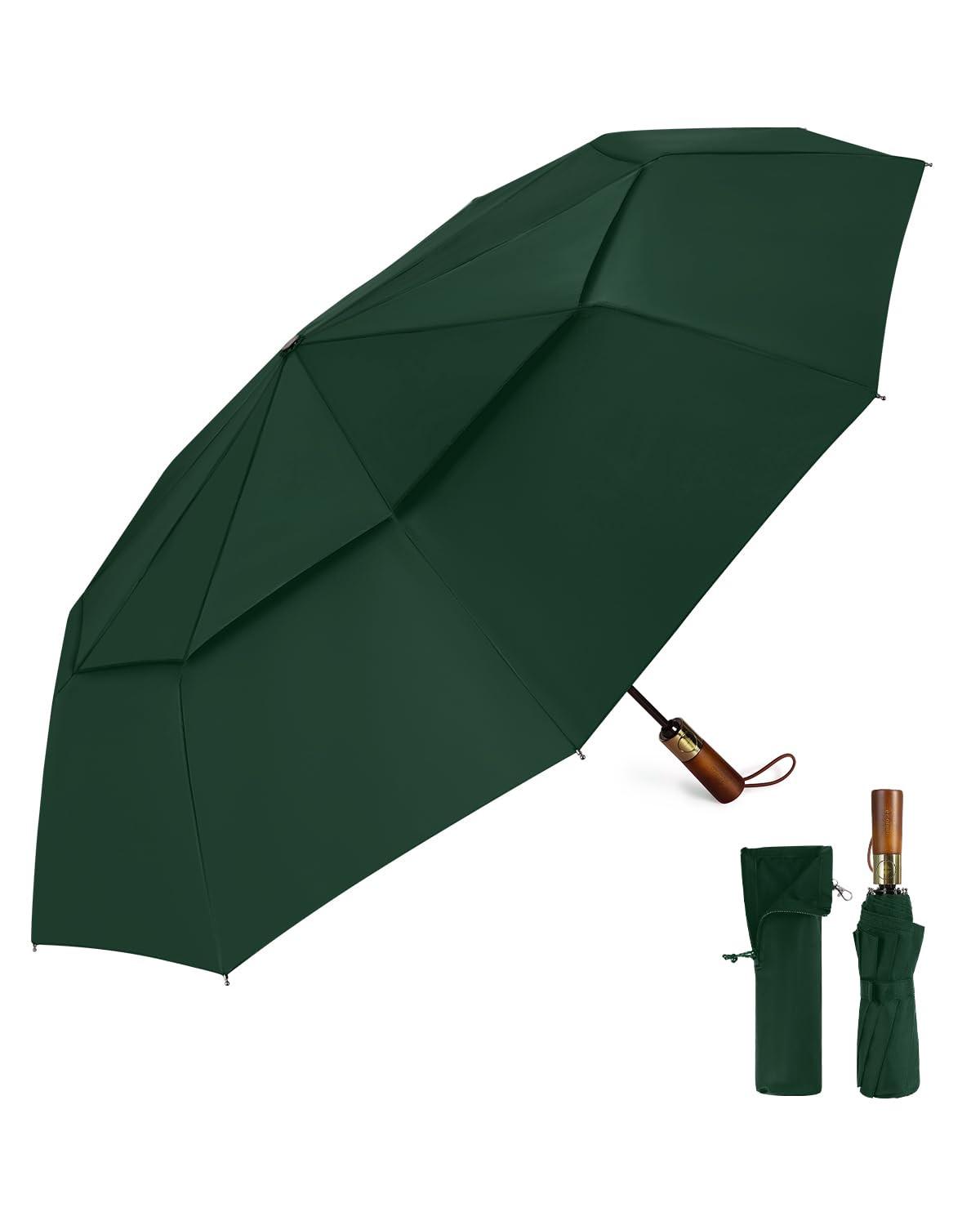 Alopini  Grand parapluie automatique anti-tempête, parapluie de poche avec double canopée ventilée et poignée en bois