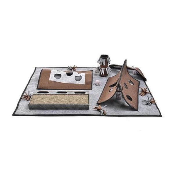 Le tapis d'activités CanadianCat Coleen est à la fois un terrain de jeu, un griffoir, un tunnel, un lieu de retraite et un terrain de chasse. Ce tapis de jeu est un véritable atout pour tes tigres de salon, il réunit tout ce dont ton chat a besoin pour être heureux.