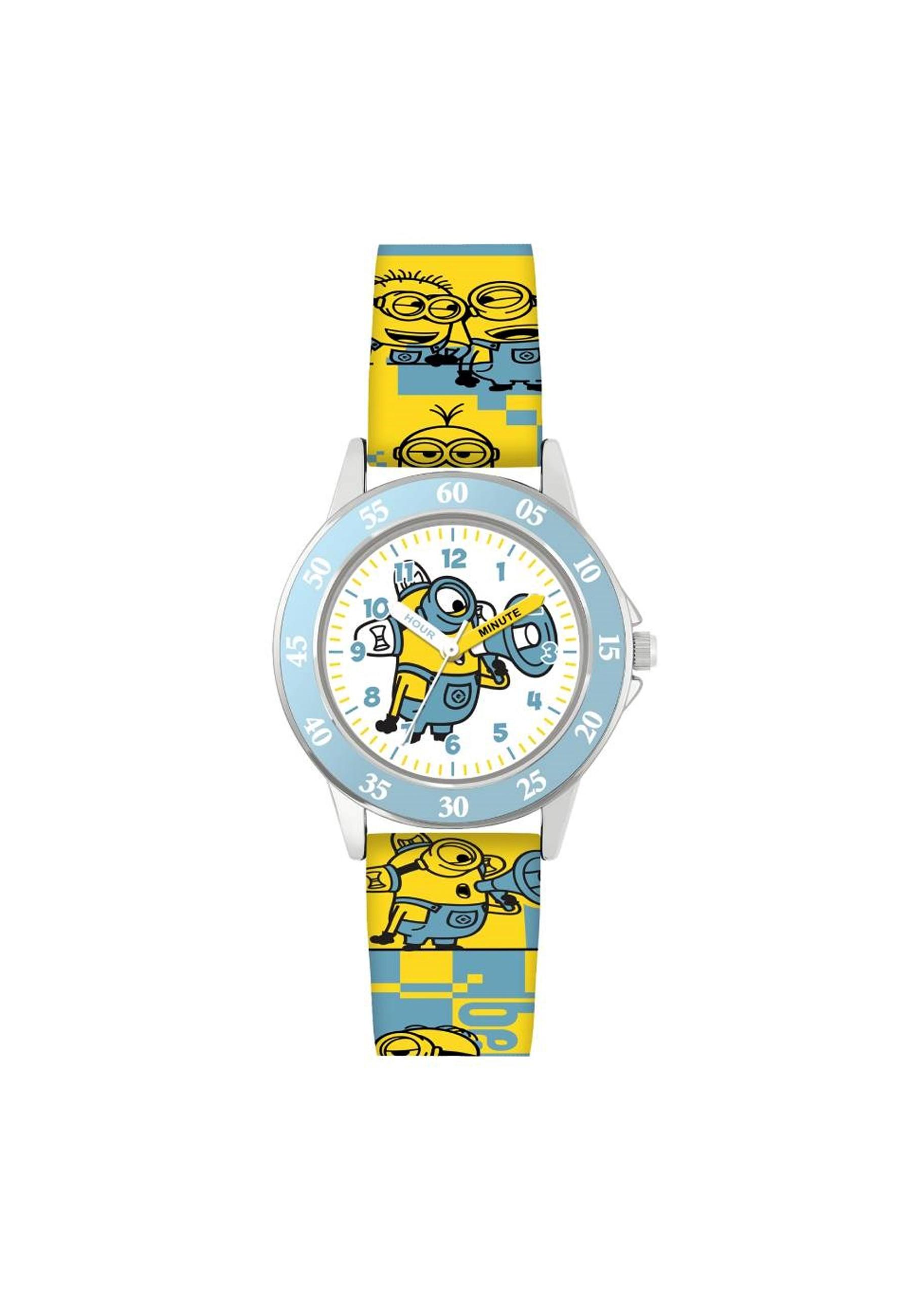 Cette montre bleue et jaune des Minions, destinée à l'enseignement de l'heure, a un cadran blanc Minion et un bracelet en silicone. Idéale pour apprendre aux enfants à lire l'heure.