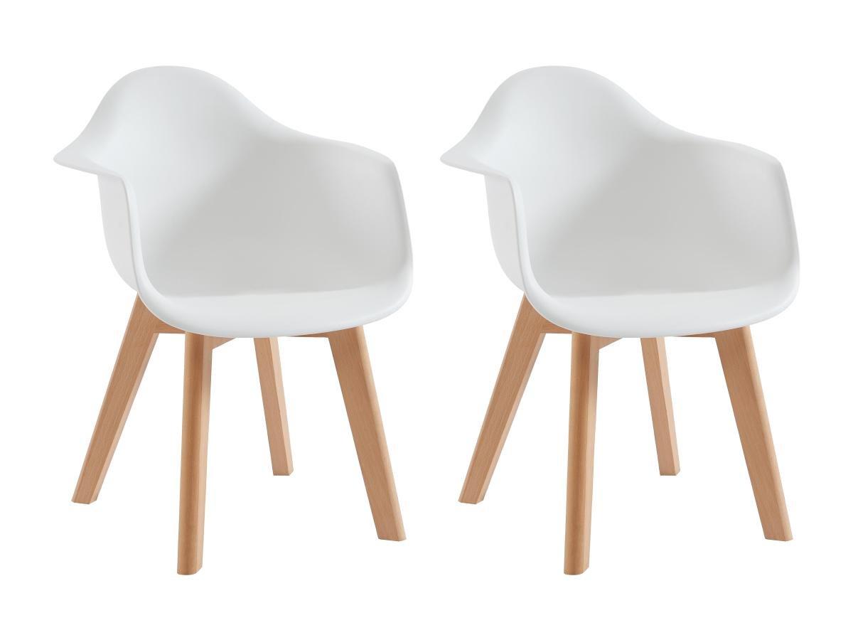 Vente-unique, Lot de 2 chaises enfant avec accoudoirs en polypropylène et hêtre - Blanc - POUPINETTE