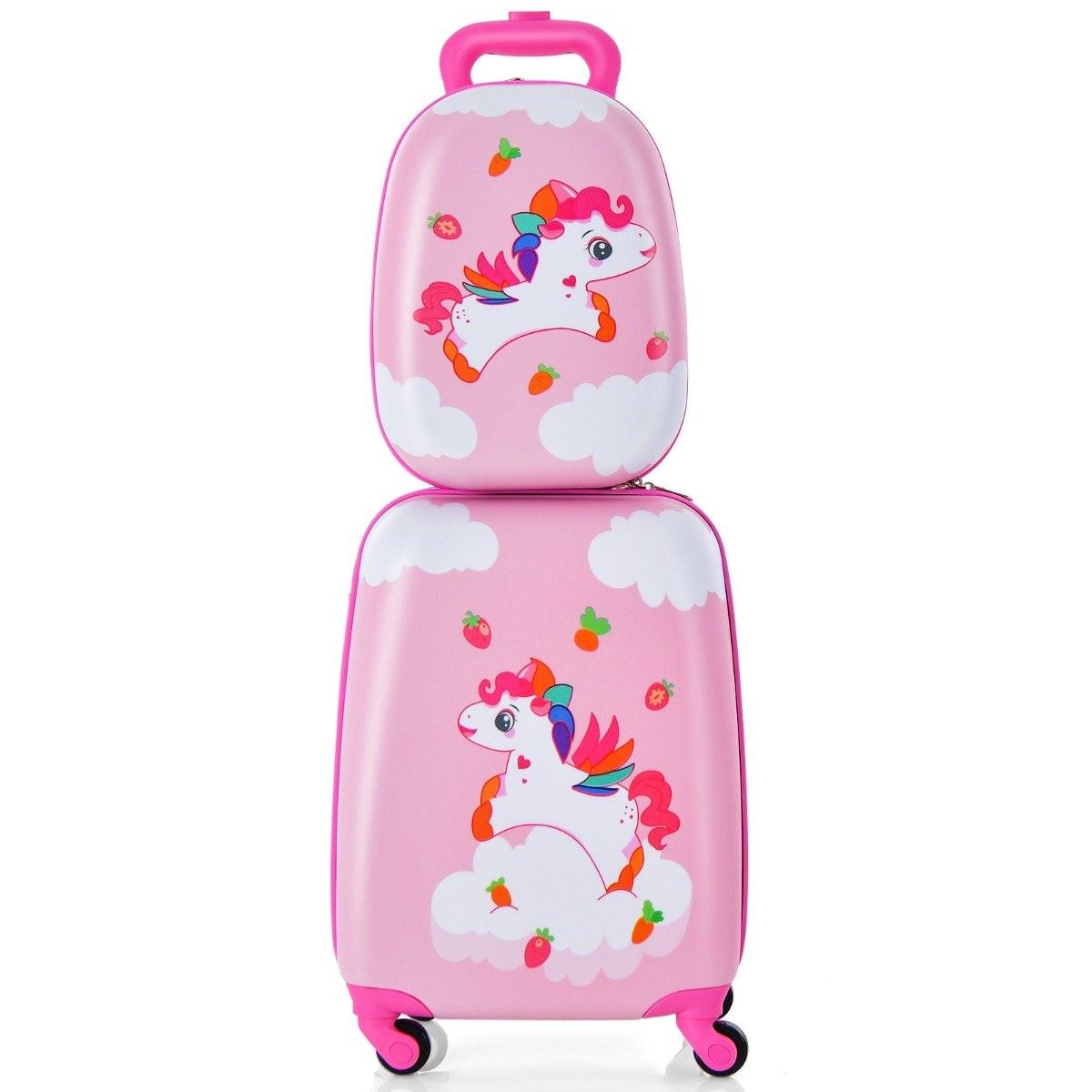 Northix Valise enfant 2 pièces + sac à dos en plastique trolley enfant bagage enfant 12"+16" licorne rose