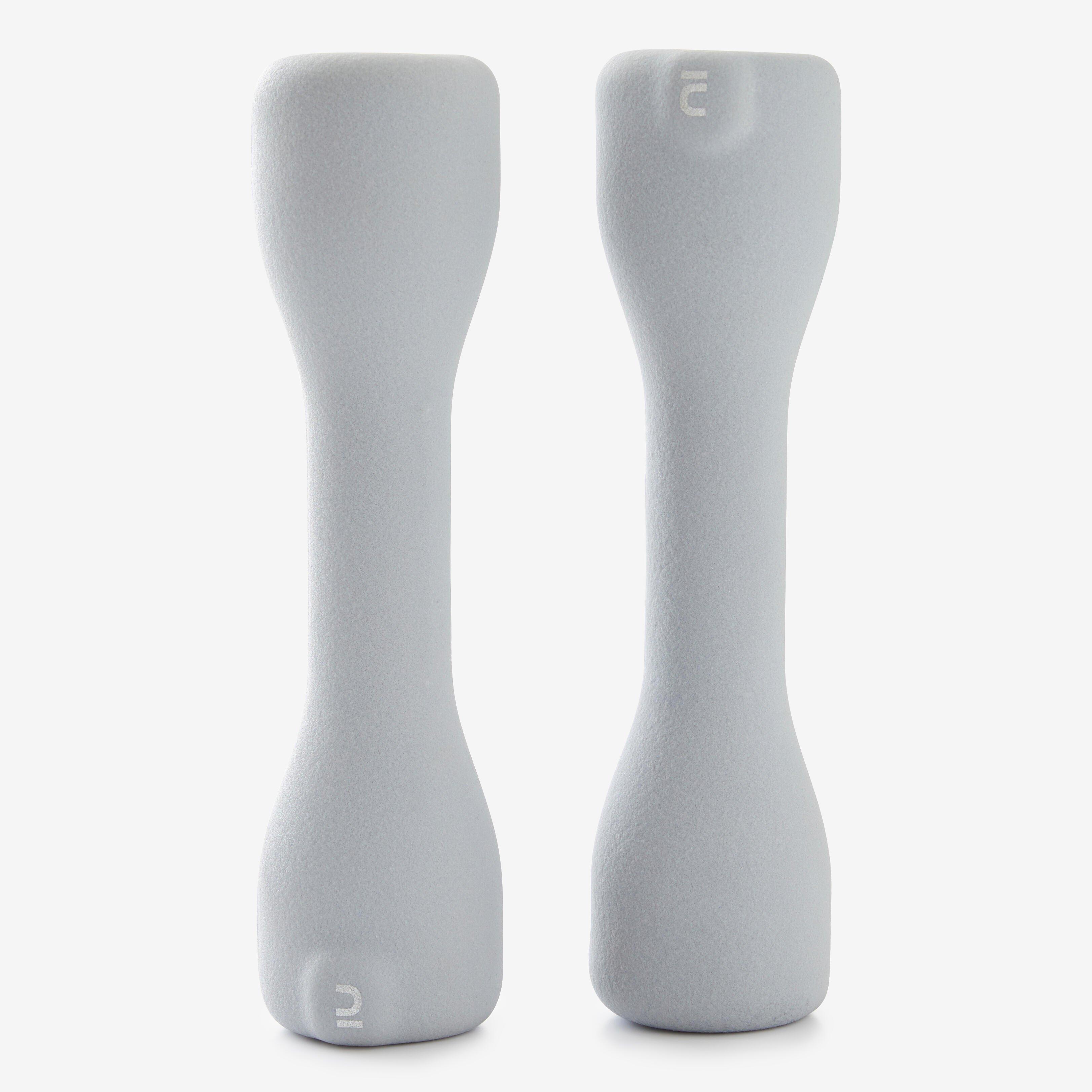 Notre gamme regroupe 3 modèles de paires d'haltères allant de 1 à 3kg.|Ils ne roulent pas une fois posés au sol : plus besoin de leur courir après ;) !|Leur revêtement lisse est facile à nettoyer et ne marque pas le sol.